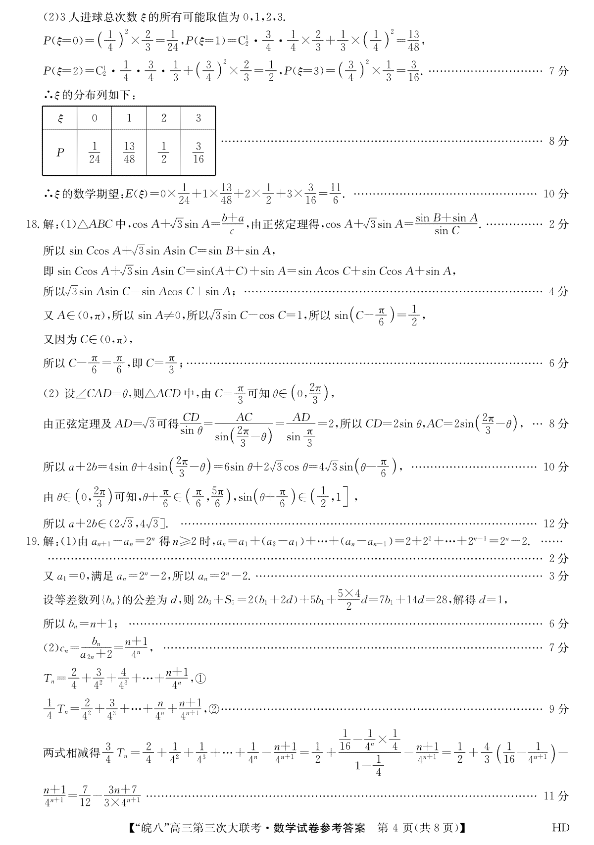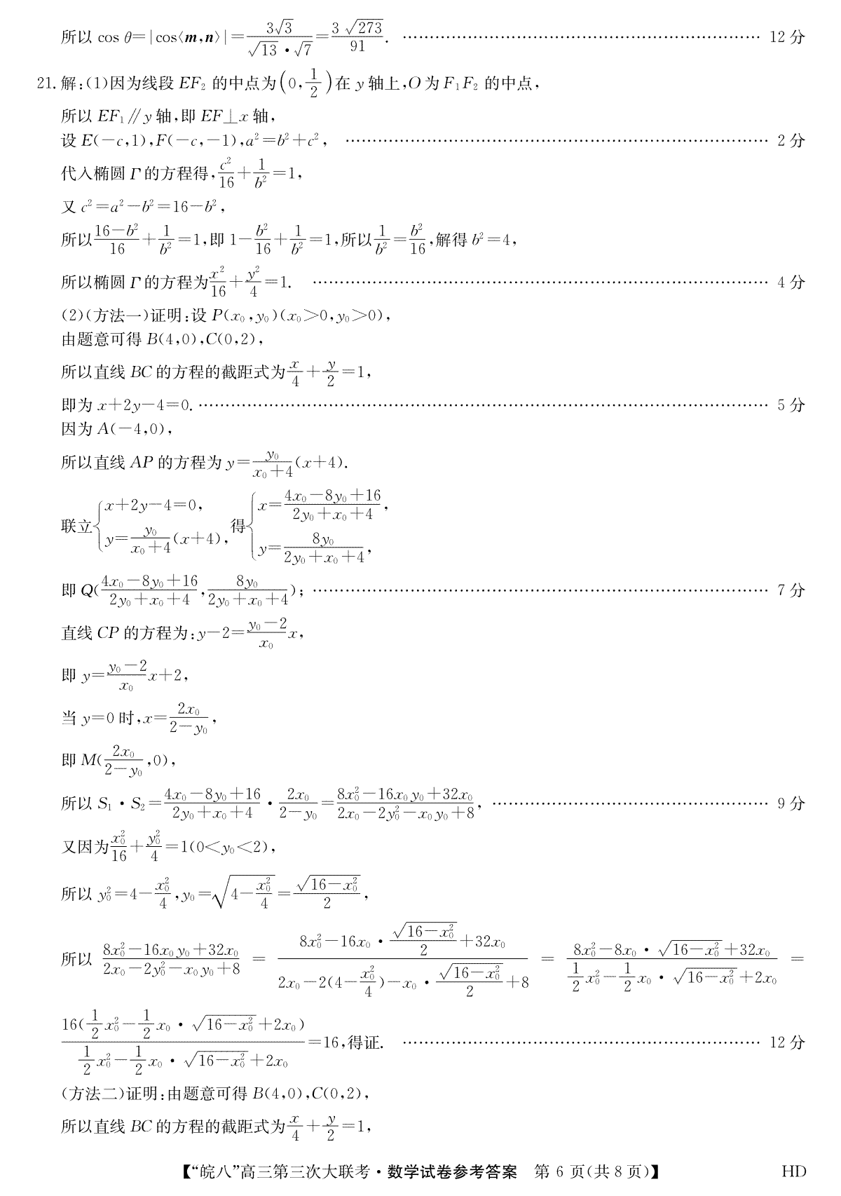 一、2023届皖南八校高三第三次大联考-2023安徽二模数学答案