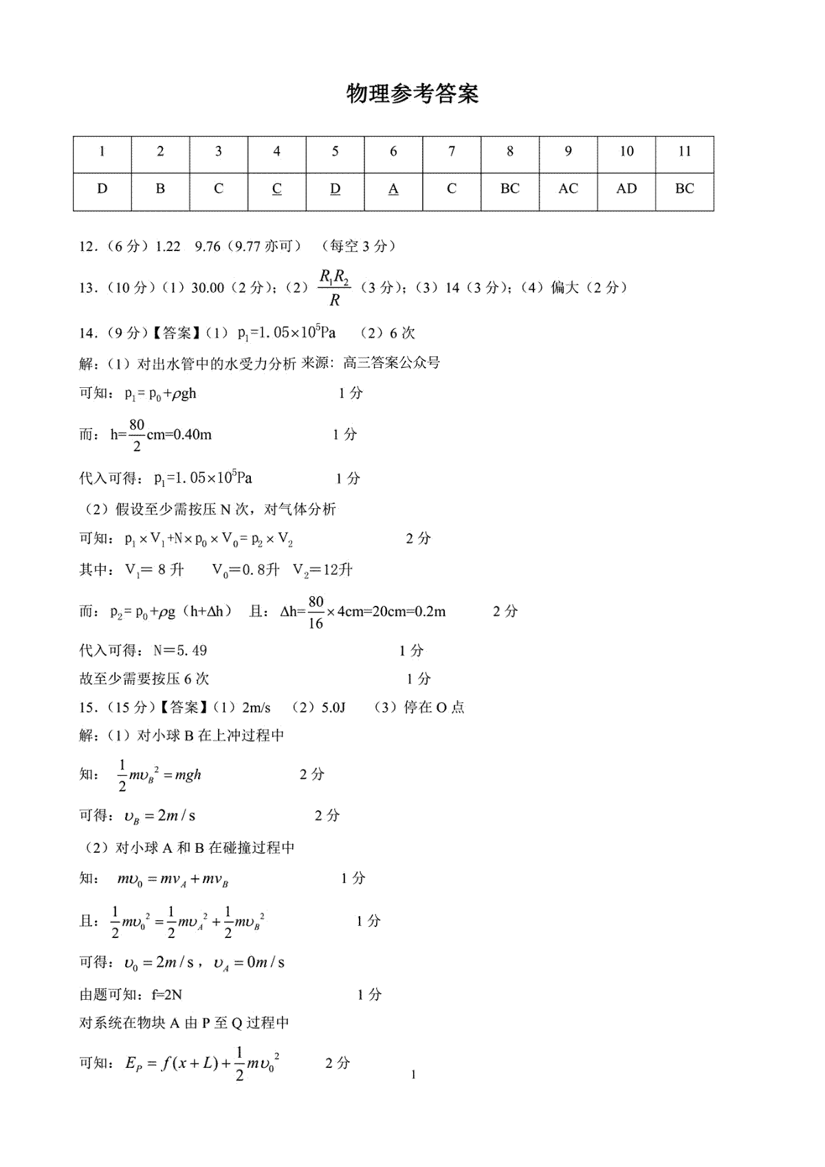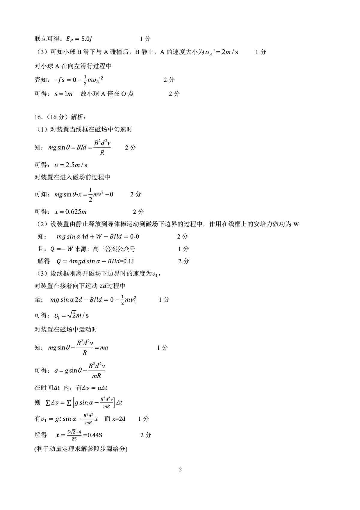下载2023河北邯郸高三二模物理答案PDF格式或doc