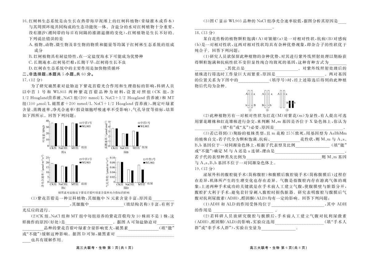 下载2023届高三年级4月份大联考生物正文PDF格式或doc