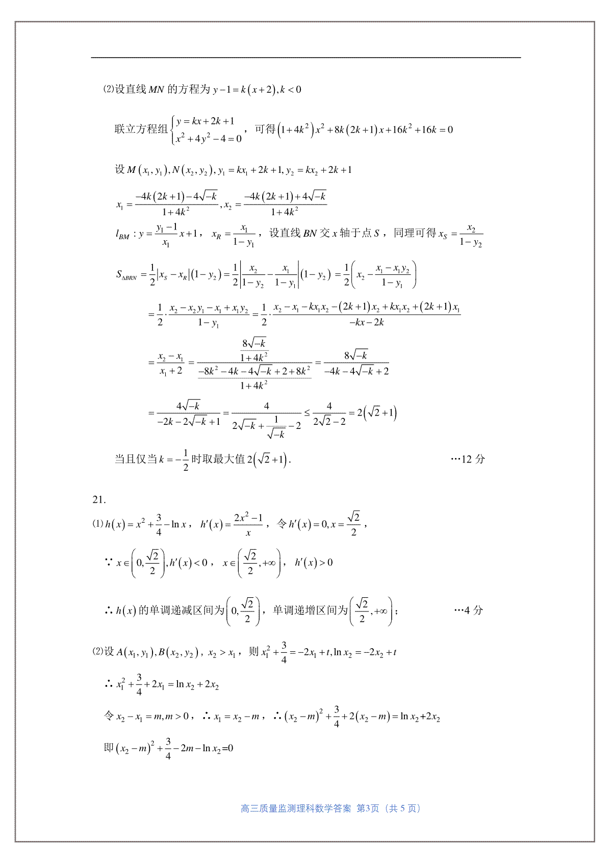 2023届黑龙江省大庆市高三第三次模拟考试 数学答案