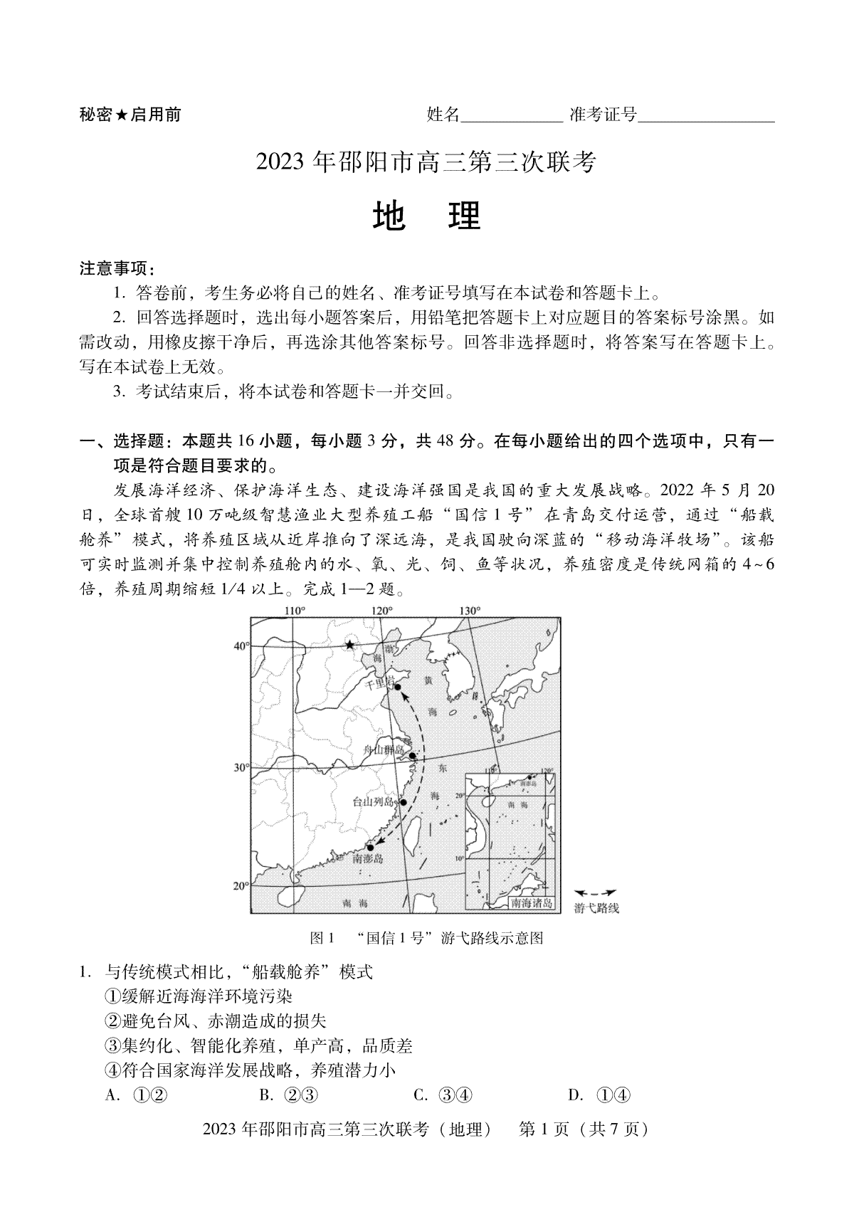 如果你想下载2023邵阳市三模地理DOC或PDF版,请点击本文末链接!