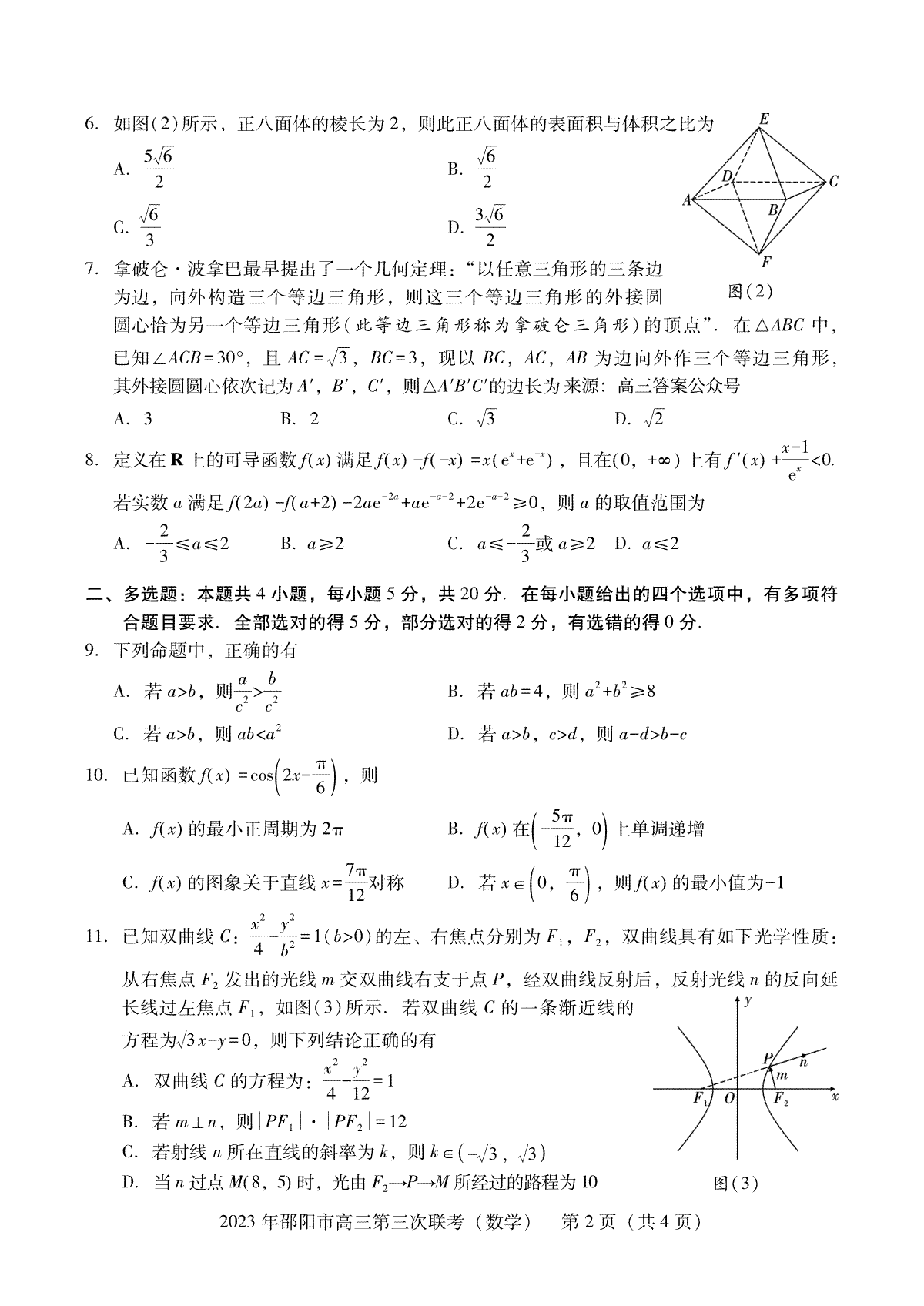 2.2023年湖南省邵阳市高三第三次(三模)联考数学答案
