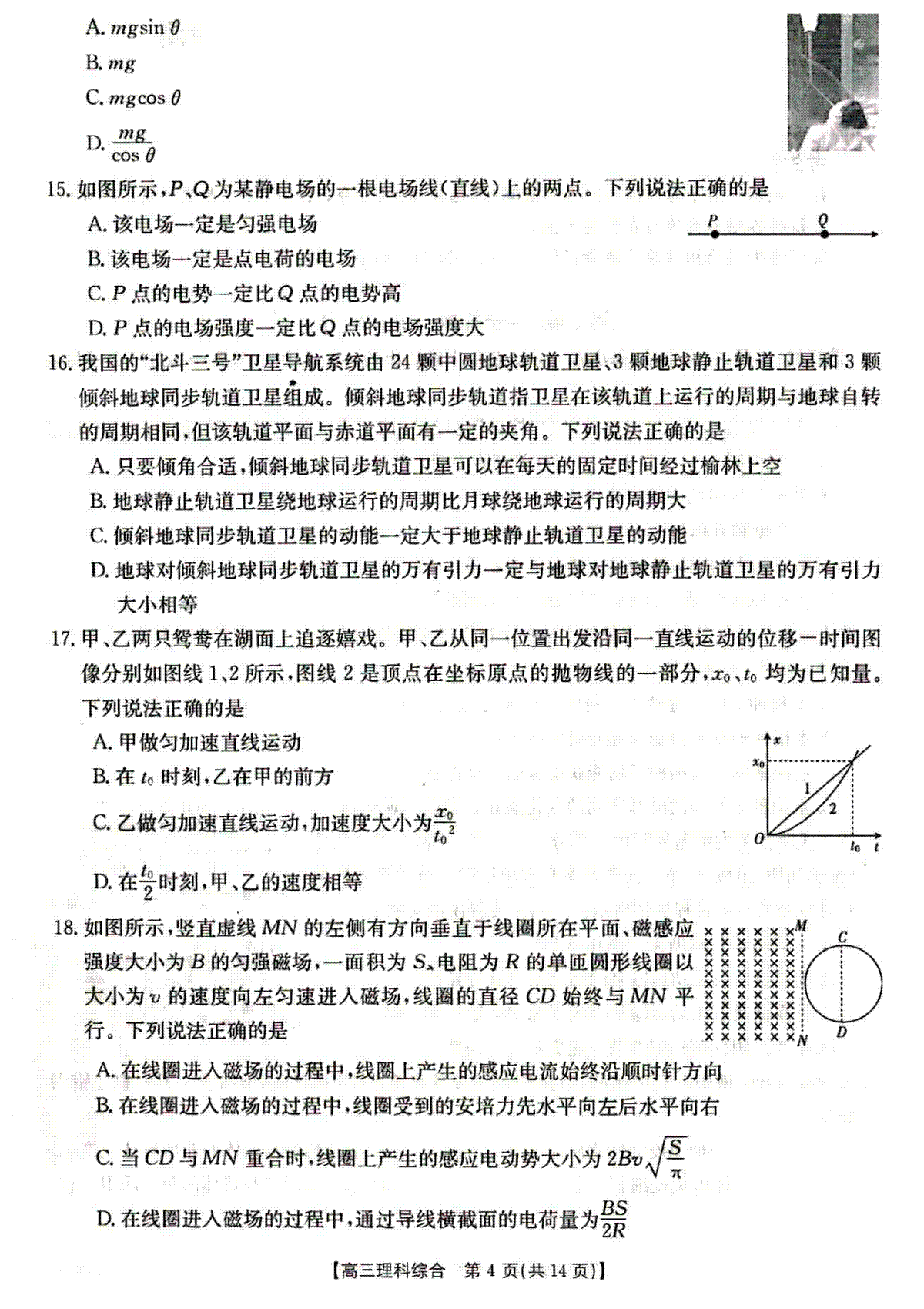 一、2023届陕西省榆林市高三第四次模拟考试 理综