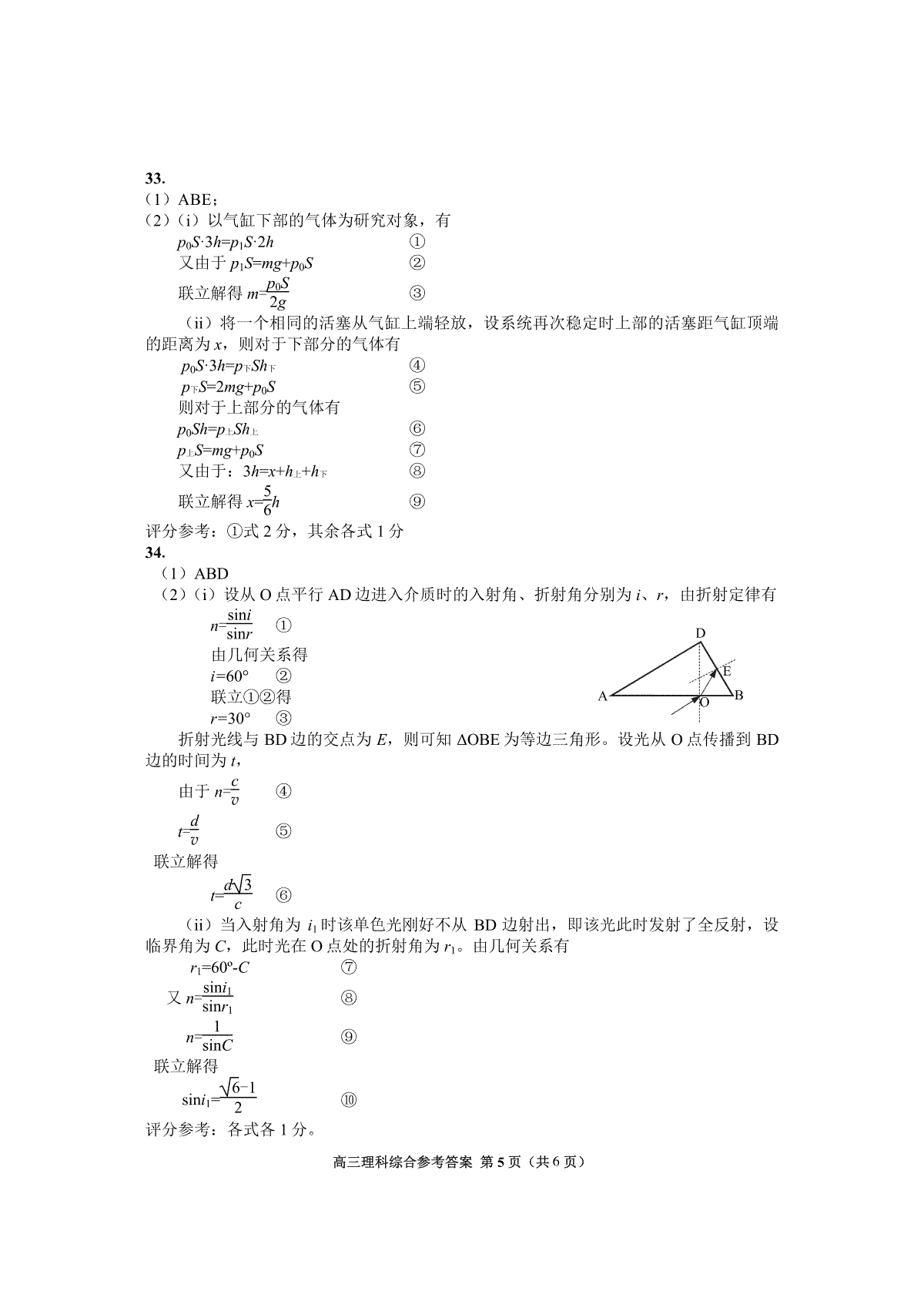 下载贵州省贵阳市2023届高三适应性考试(二)理综答案PDF格式或doc