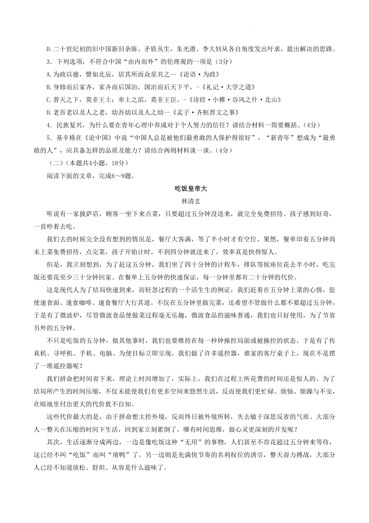 2023届4月理综全国卷语文