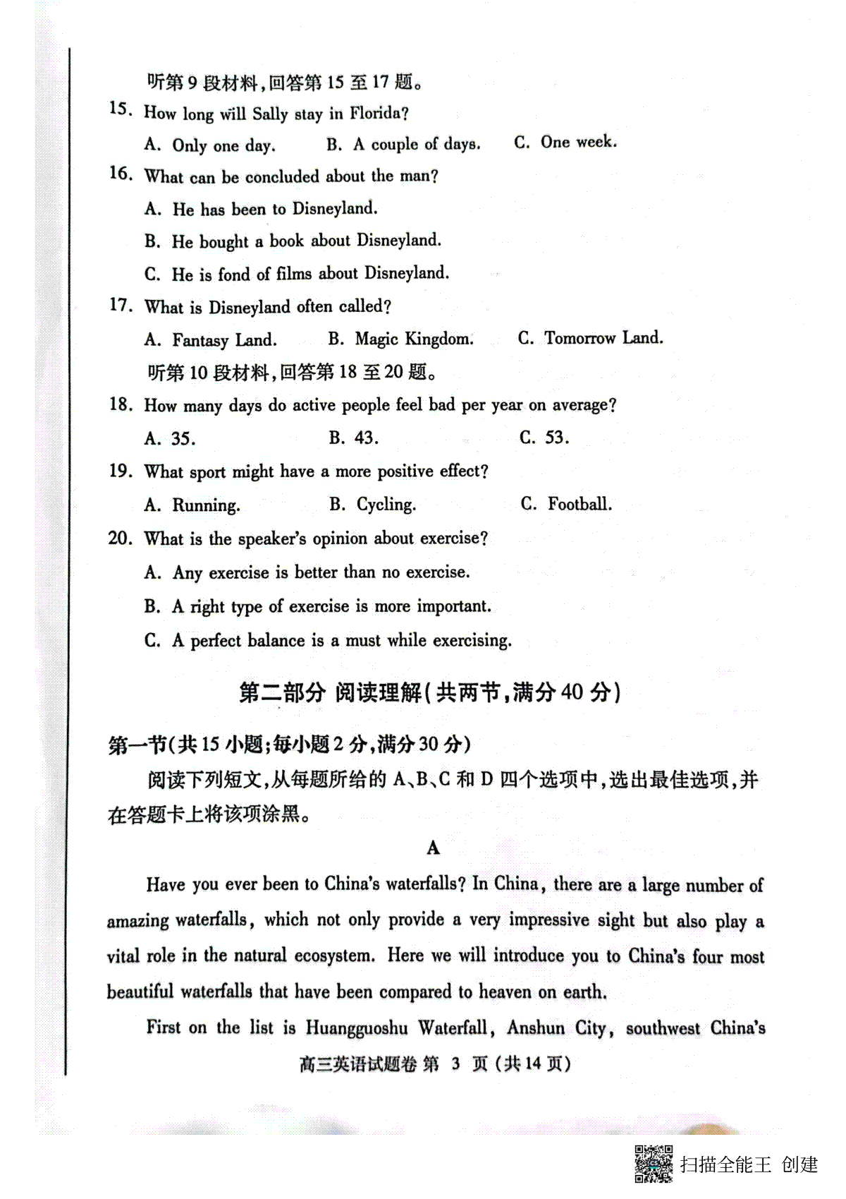 2023届4月理综全国卷语文