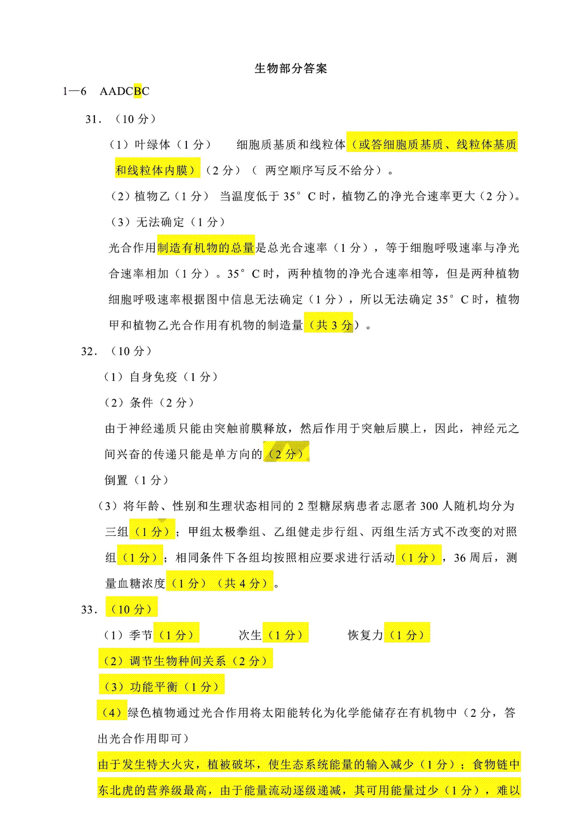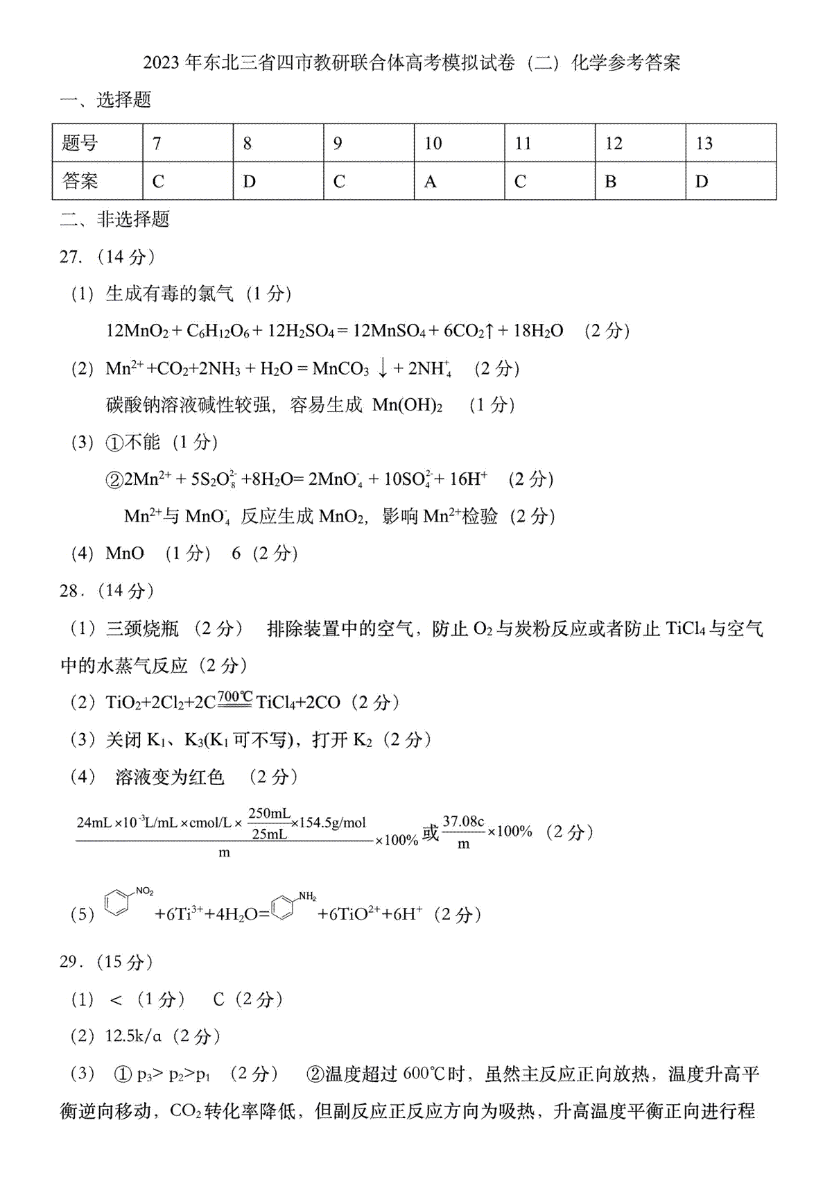 下载2023东北三省四市二模理综试题及解析PDF格式或doc