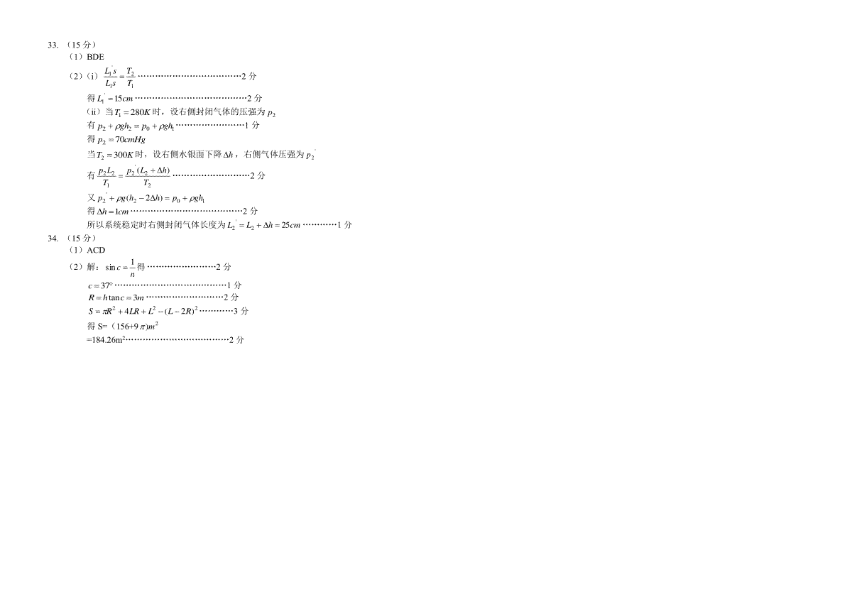 下载2023江西重点协作体二联高三物理答案PDF格式或doc