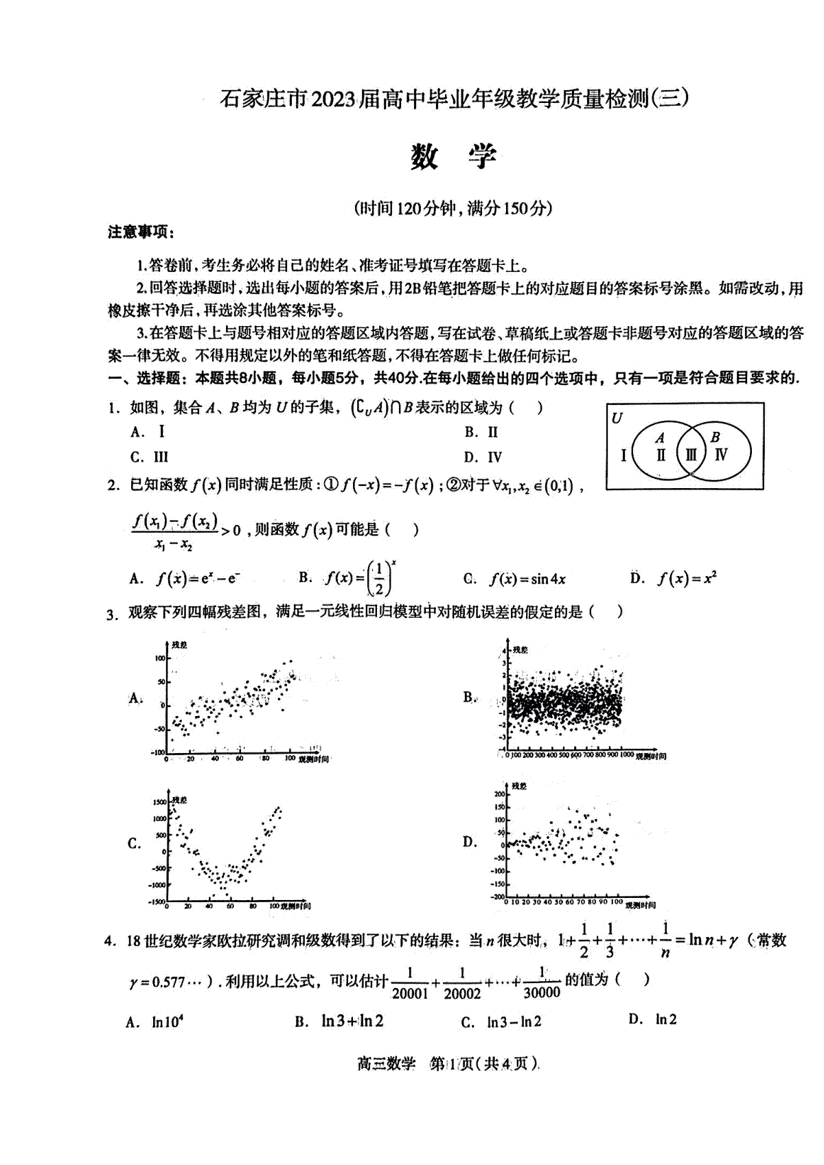 1.2023石家庄三模数学