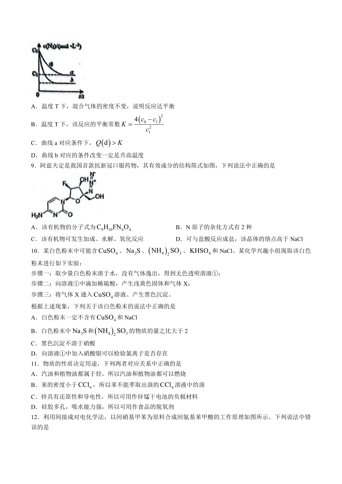 8.2023石家庄三模化学