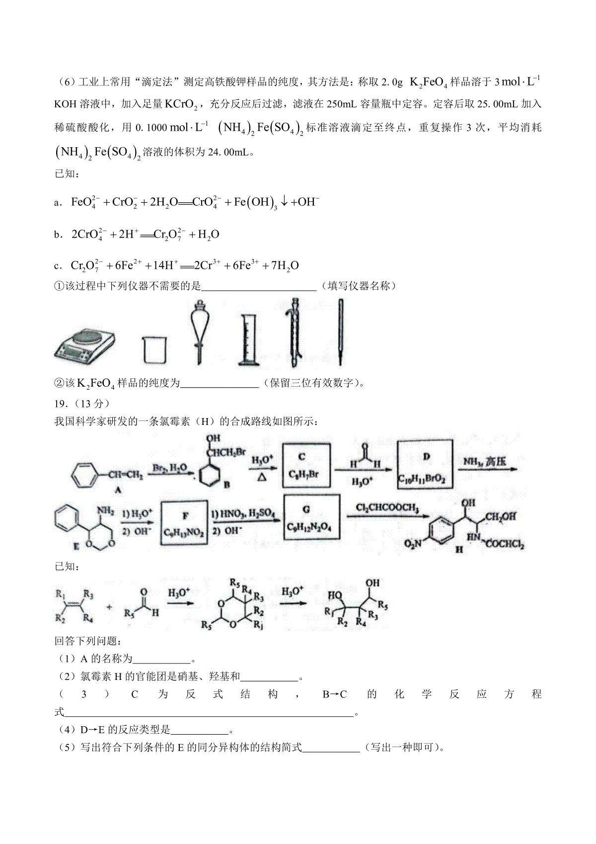 7.2023石家庄三模化学答案