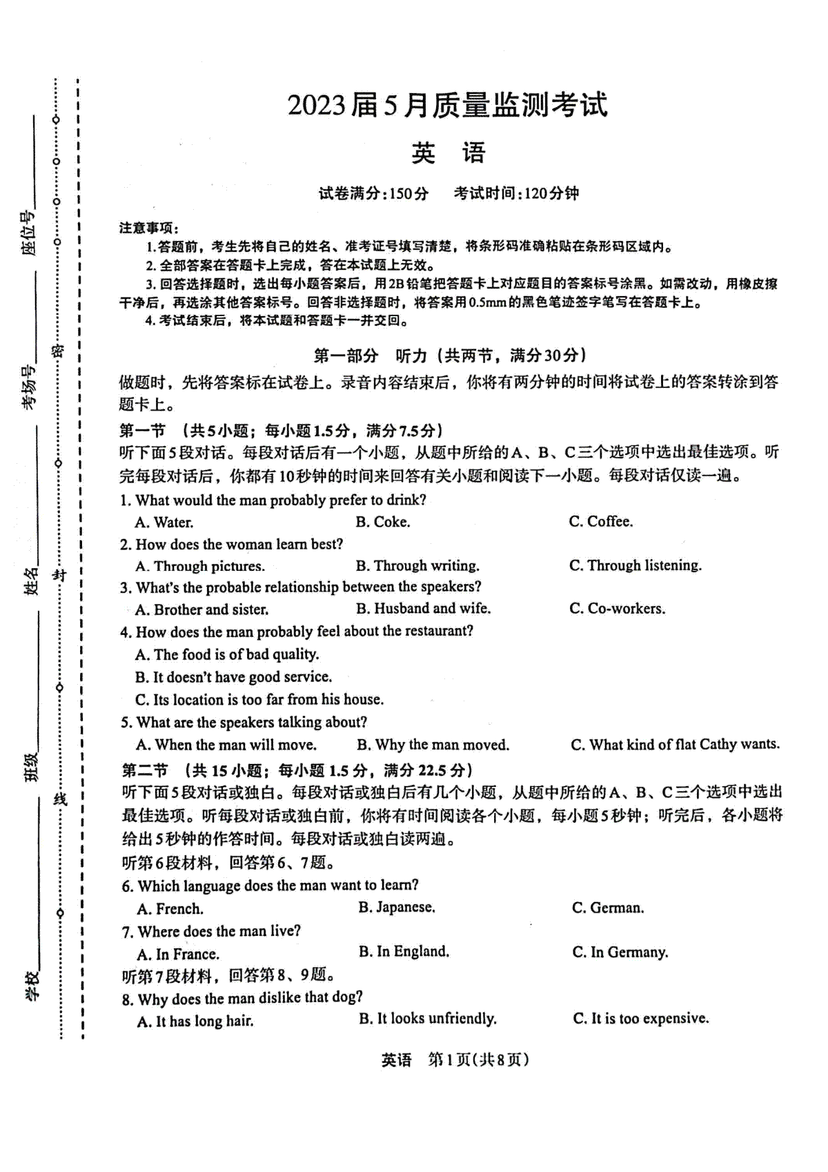 如果你想下载2023菁师联盟5月英语DOC或PDF版,请点击本文末链接!
