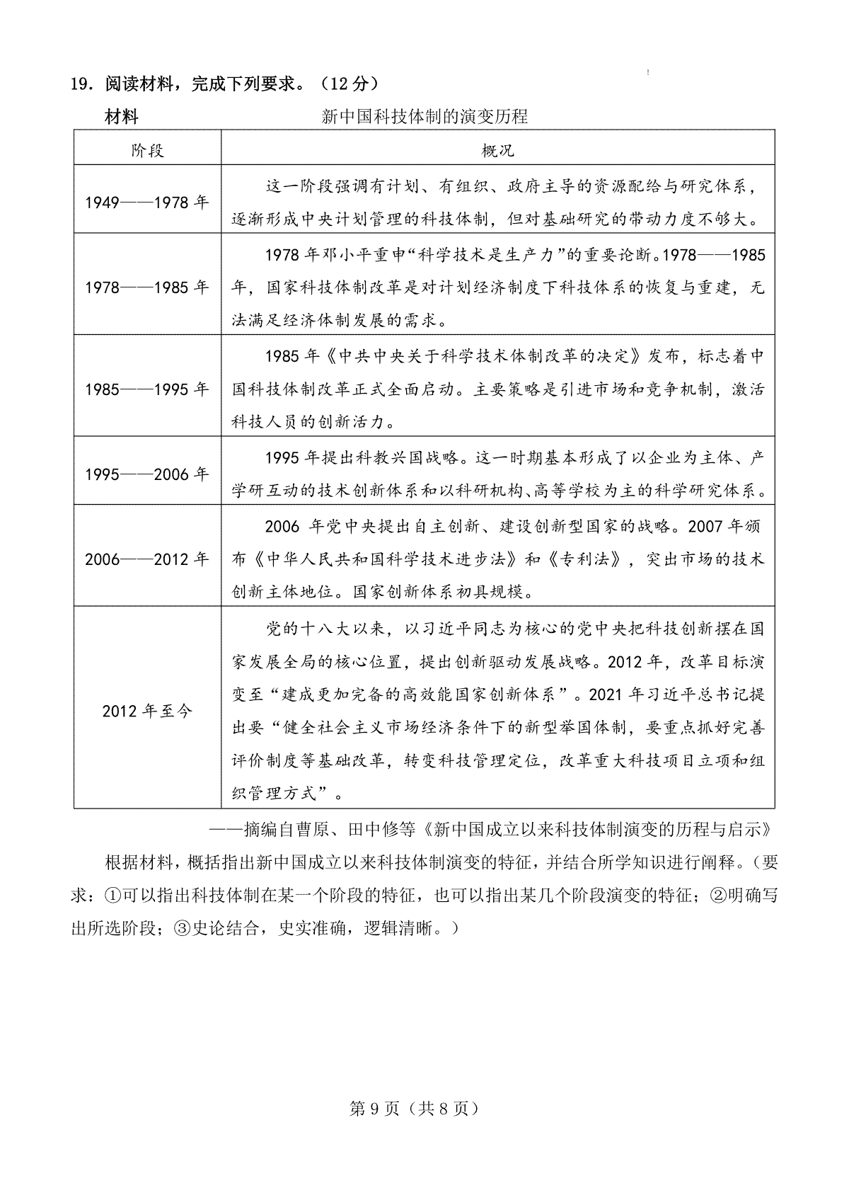 5.2023届河南省郑州市高三下学期5月质量监测考试 文综答案 历史