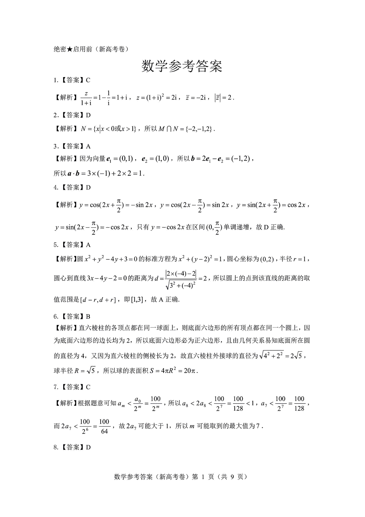 1.2023三重教育5月数学答案