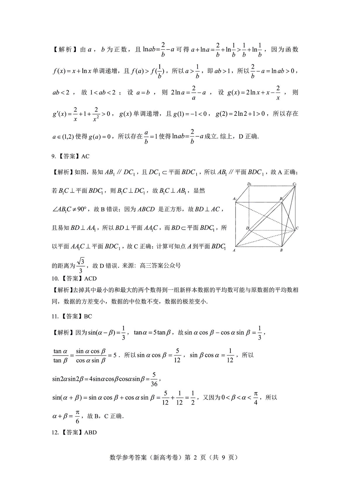 下载2023三重教育5月数学答案PDF格式或doc