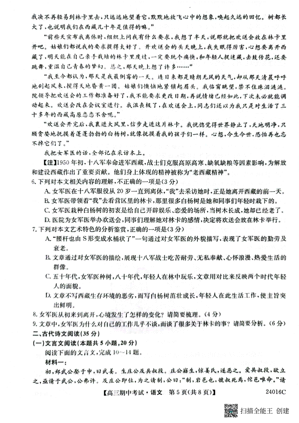 8.山东省枣庄市滕州市2023-2024学年高三上学期期中考试 语文