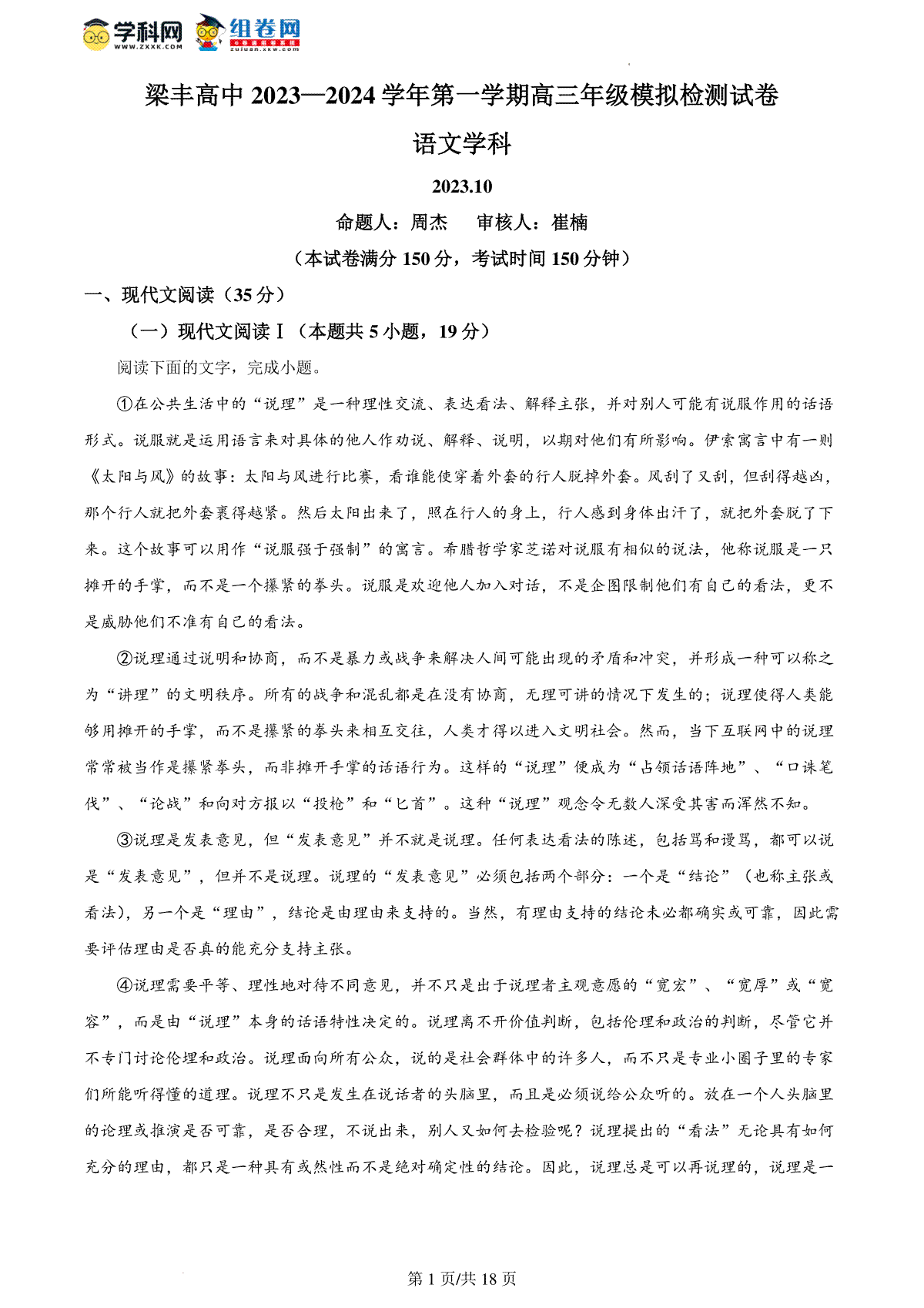 1.精品解析:江苏省张家港市梁丰高级中学2023-2024学年高三上学期期中模拟检测语文试题(解析版)