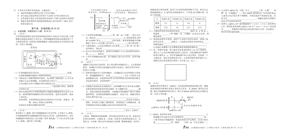 如果你想下载1号卷·A10联盟2024届高三上学期11月段考生物学DOC或PDF版,请点击本文末链接!