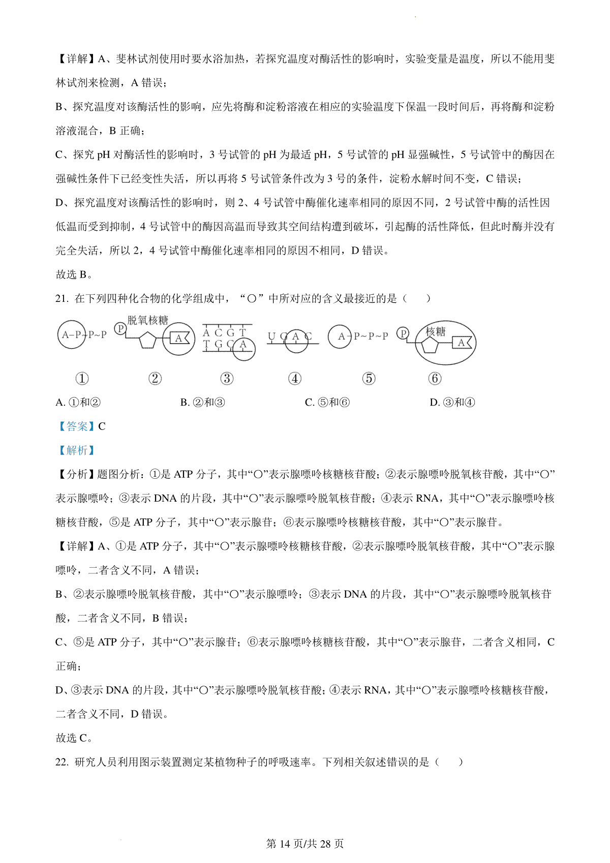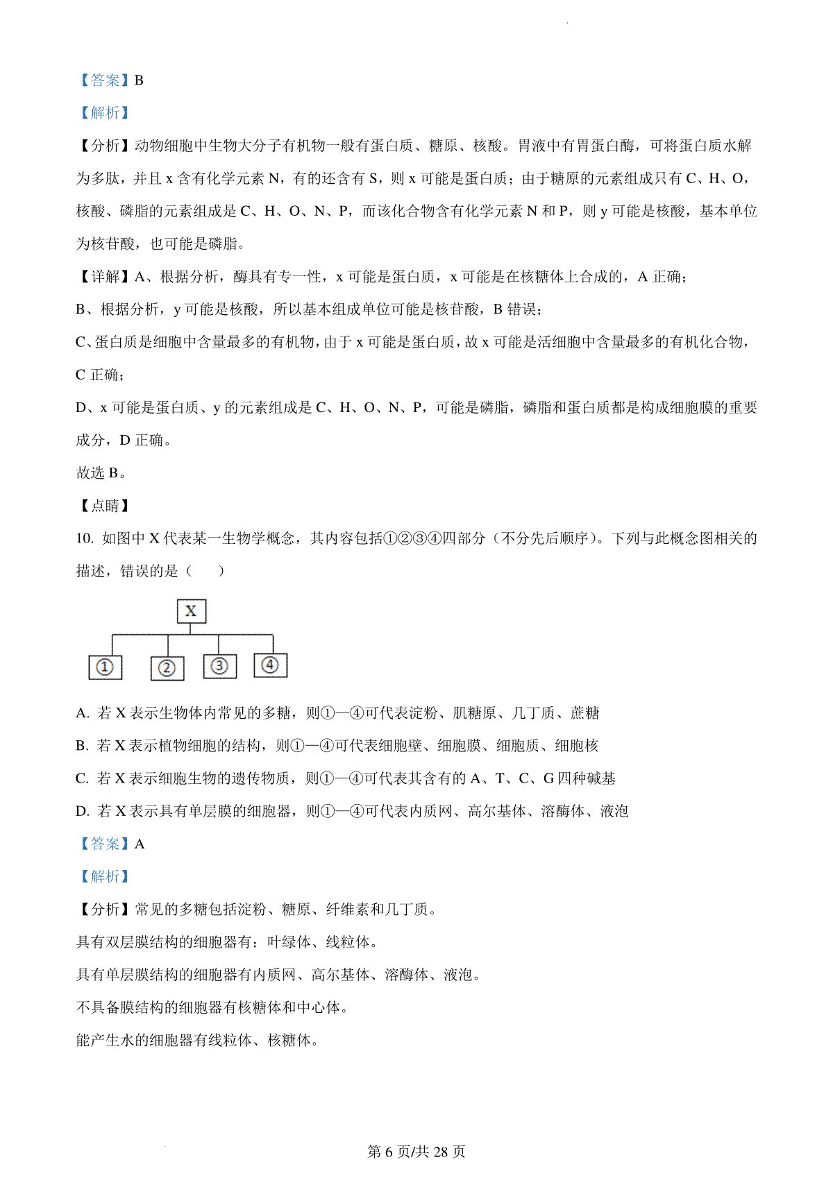 6.2024届华大新高考联盟高三上学期11月教学质量测评(新教材卷)生物参考答案和评分标准