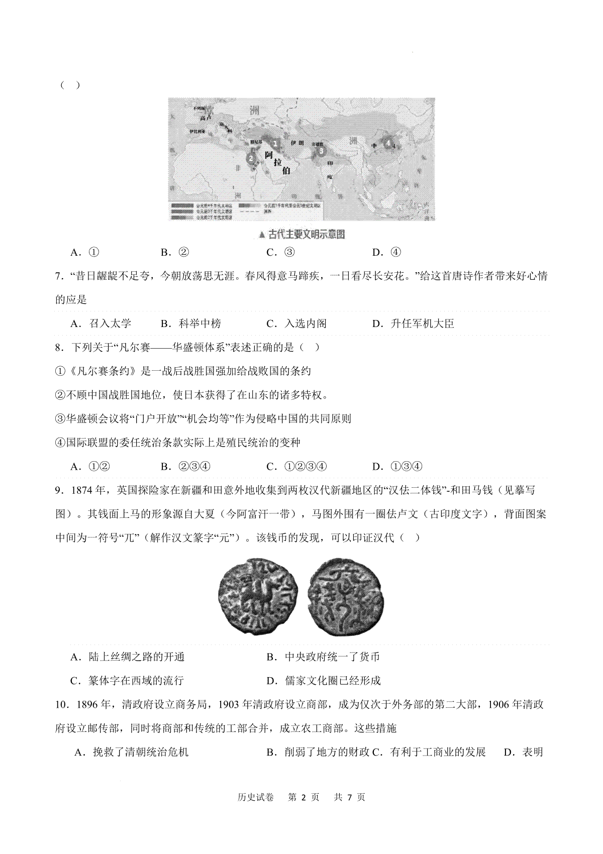 一、重庆市乌江新高考协作体2024届高三上学期期中学业质量联合调研抽测 历史
