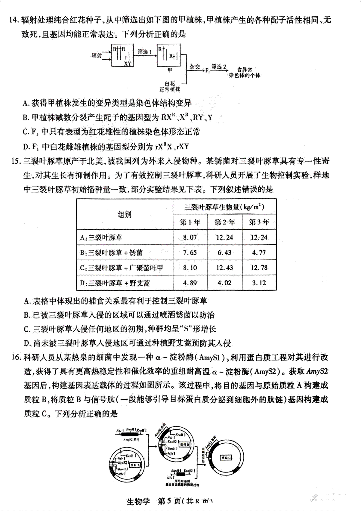 生物-江西省稳派大联考2023-2024学年高三12月统一调研测试于近期开考,本次考试对考生对知识的掌握参考价值大,为了方便大家复习掌握错题!小编在下文为大家准备了生物-江西省稳派大联考2023-2024学年高三12月统一调研测试试卷及答案解析详情,仅供考生参考。