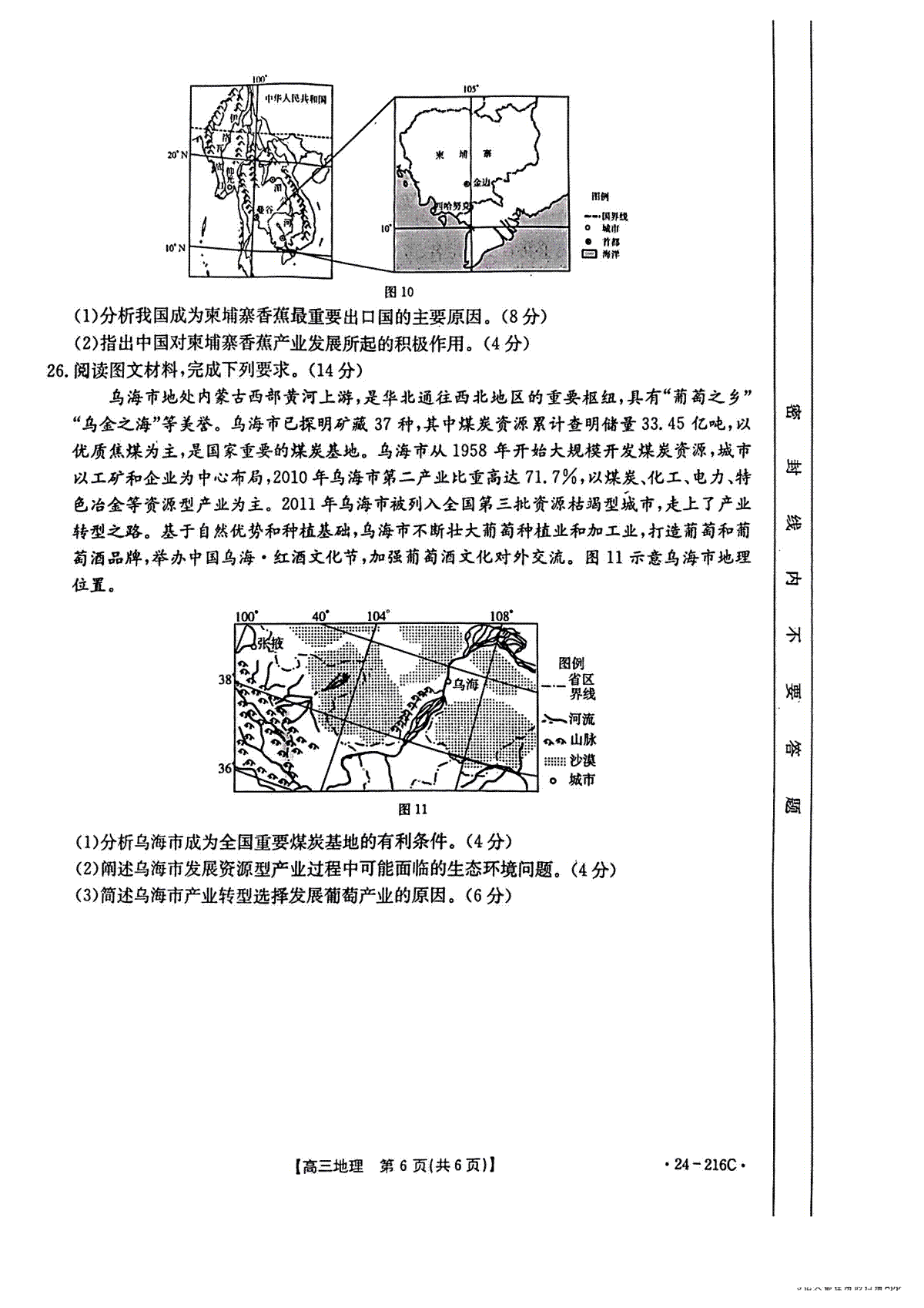 一、地理-山西省2023-2024学年高三上学期联合质量检测(金太阳216C)
