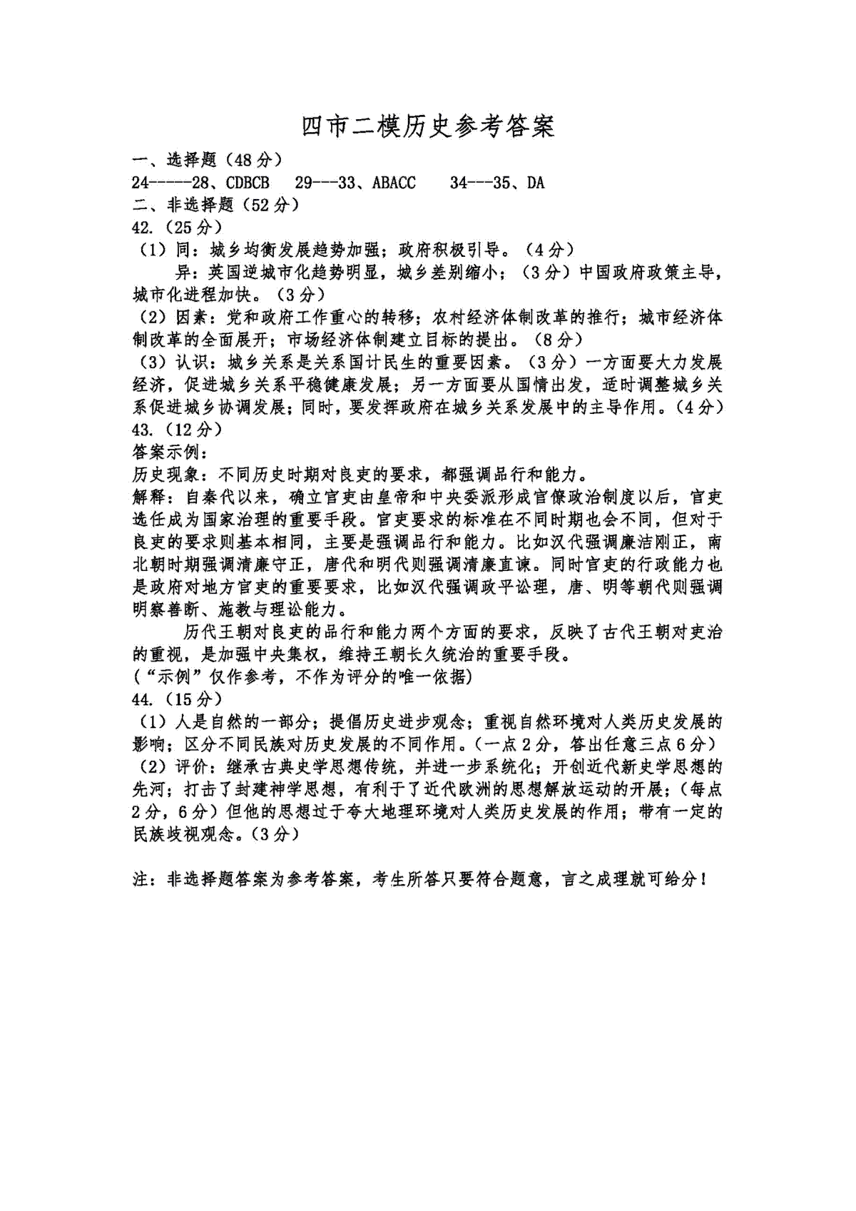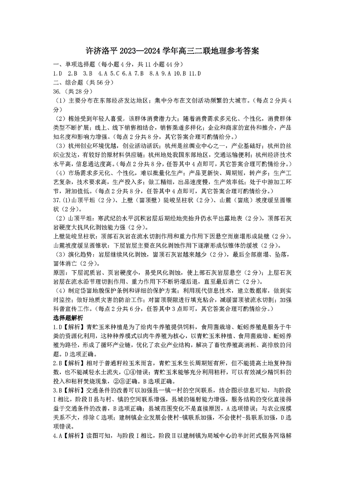 一、2024届高三许济洛平二模文综答案