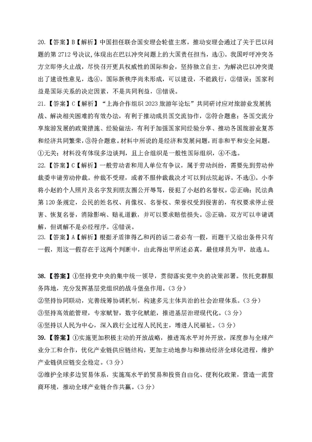 2024届高三许济洛平二模文综答案