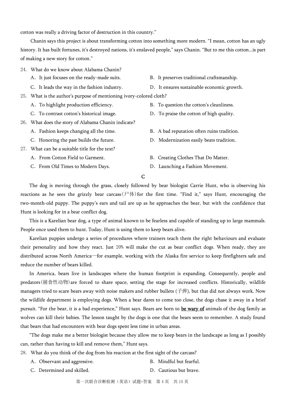 如果你想下载2024届重庆市高三一诊 英语DOC或PDF版,请点击本文末链接!