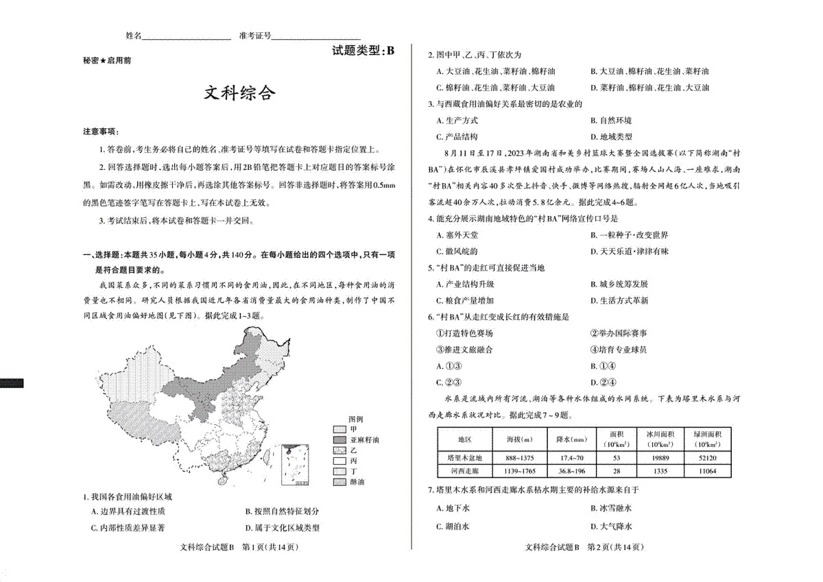 如果你想下载2024届山西省省校际名校高三下学期一模联考文综试题DOC或PDF版,请点击本文末链接!