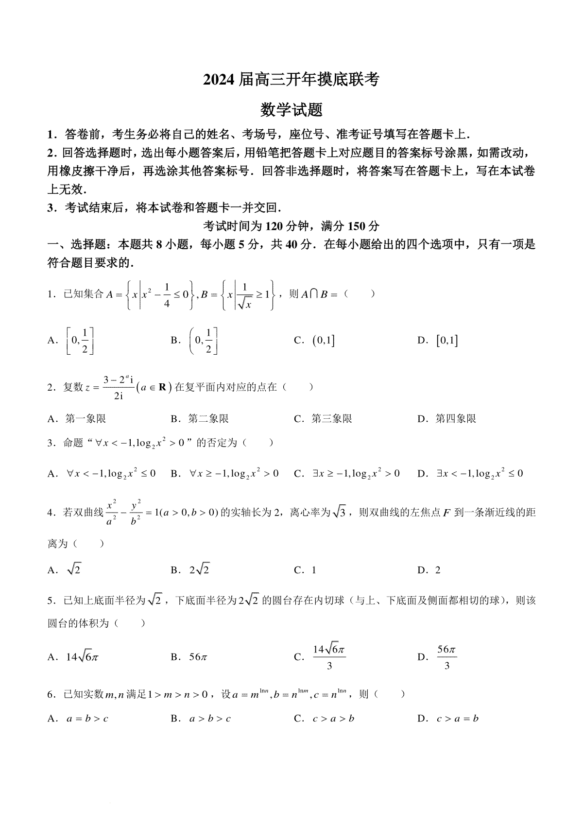 1.百师联盟2023-2024学年高三下学期开学摸底联考(新高考卷)数学试题