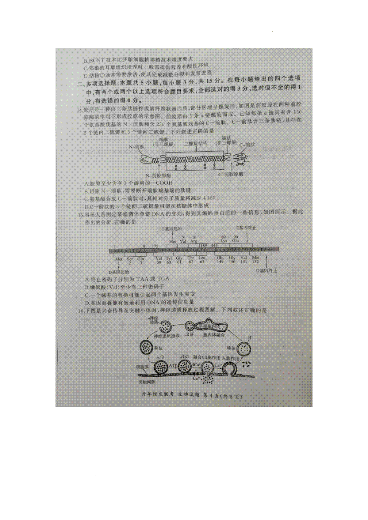 如果你想下载2024届河北省百师联盟高三下学期开学摸底联考生物试题DOC或PDF版,请点击本文末链接!