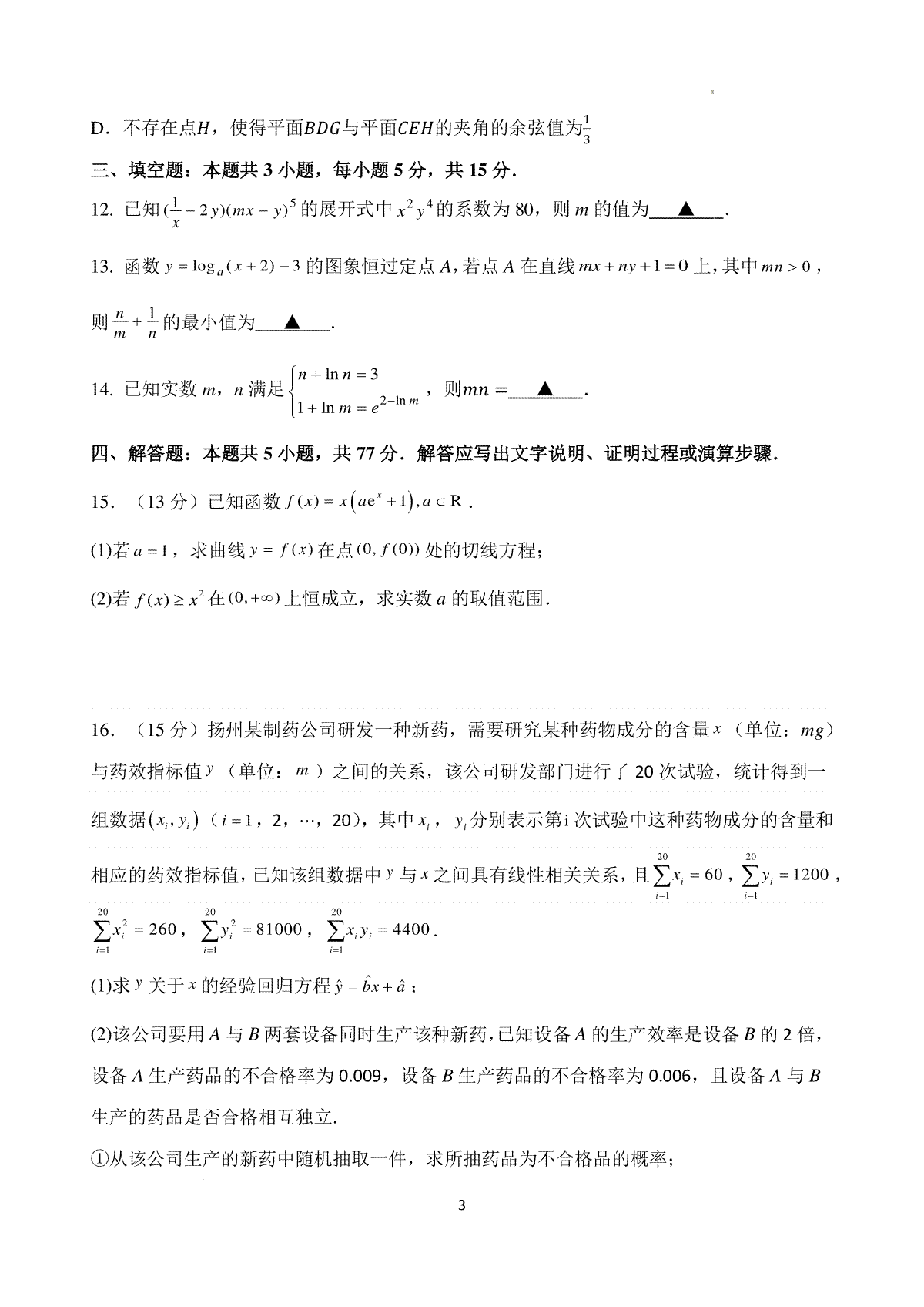 3.江苏省南京市六校2024届高三下学期期初联合调研数学答题卡