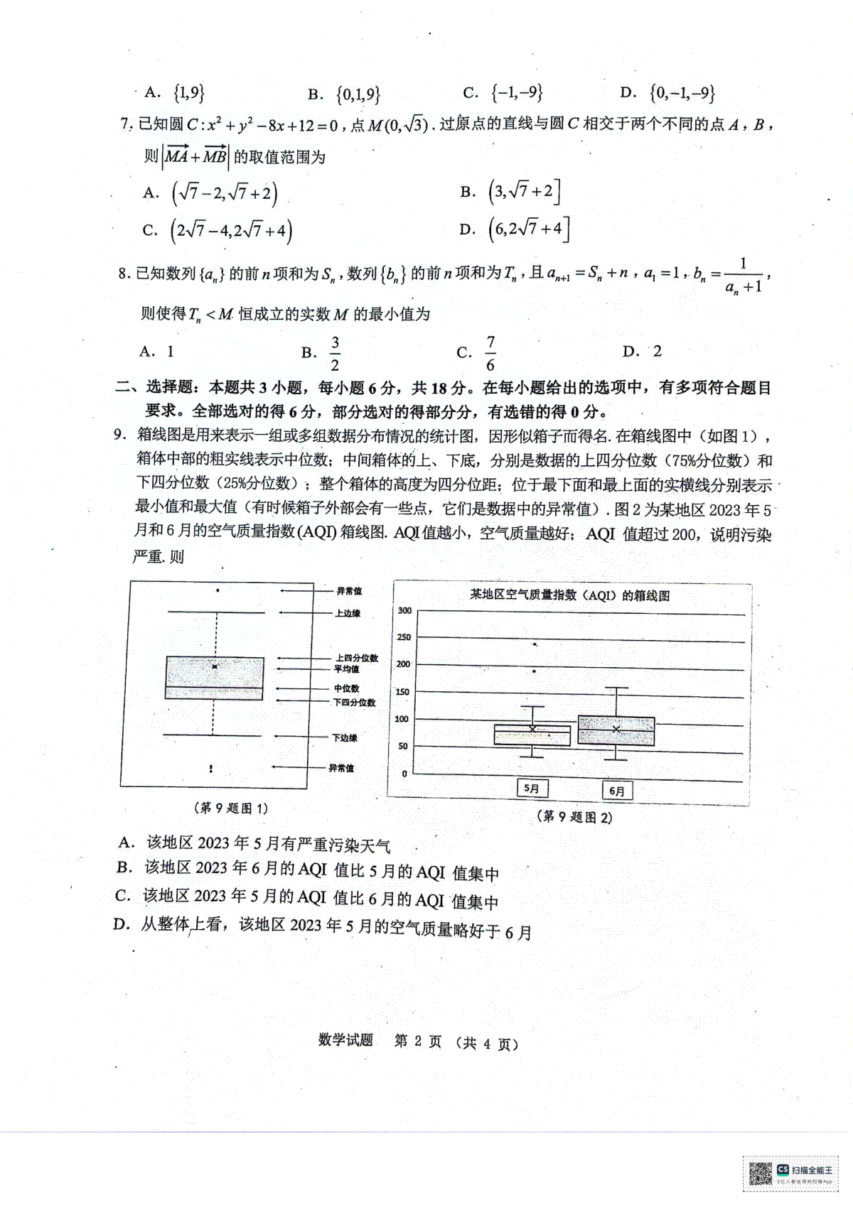 7.云南师大附中2024届高考适应性月考卷(八)数学试卷