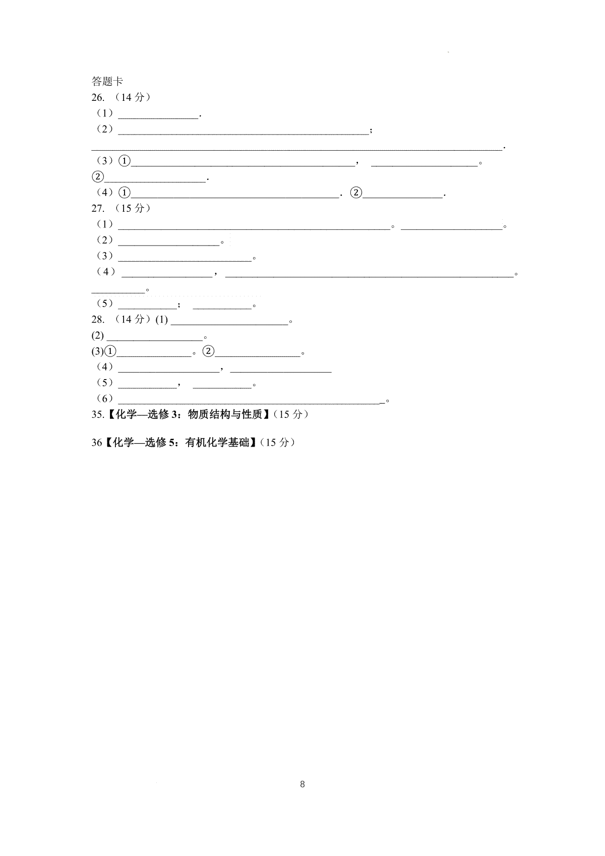 下载石室中学高2024届高三二模化学答案PDF格式或doc