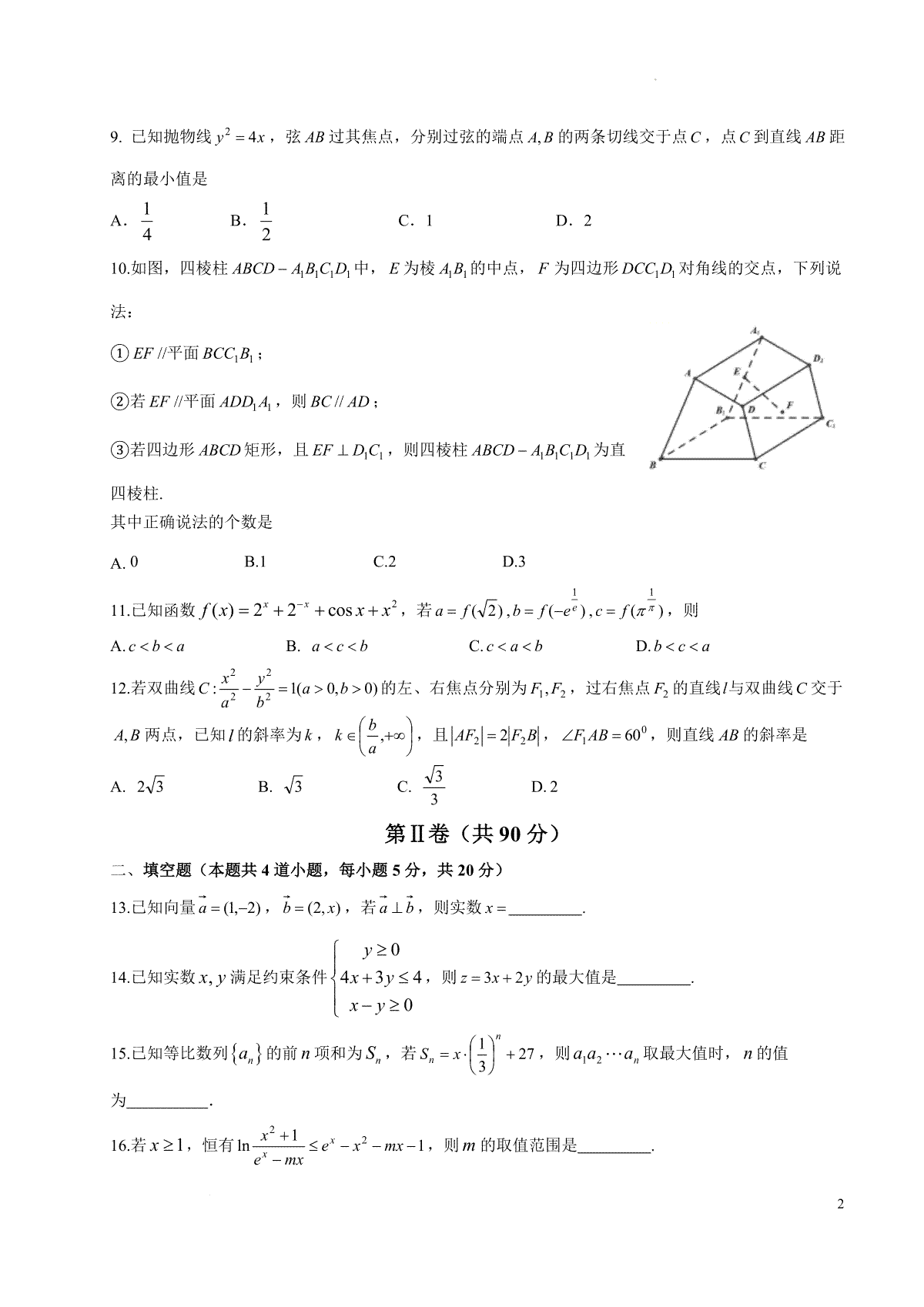 下载石室中学高2024届高三二模数学(理科)A卷PDF格式或doc