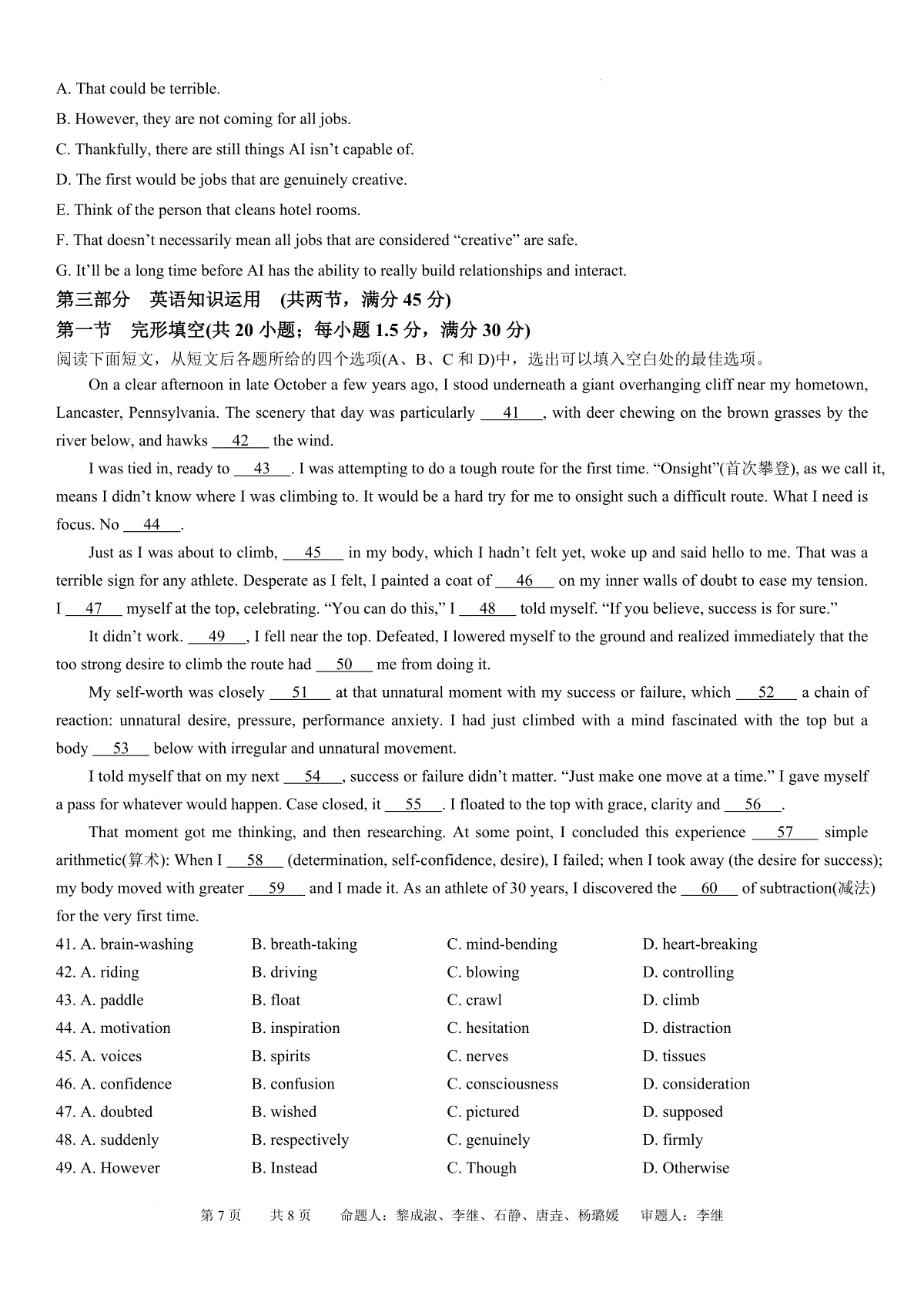 下载石室中学高2024届高三二模英语试卷PDF格式或doc
