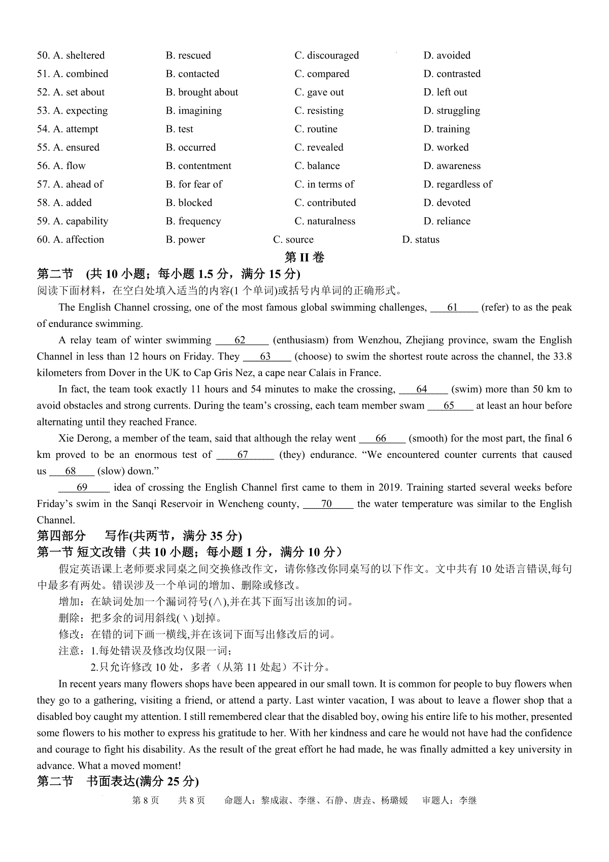 石室中学高2024届高三二模英语试卷于近期开考,本次考试对考生对知识的掌握参考价值大,为了方便大家复习掌握错题!小编在下文为大家准备了石室中学高2024届高三二模英语试卷试卷及答案解析详情,仅供考生参考。