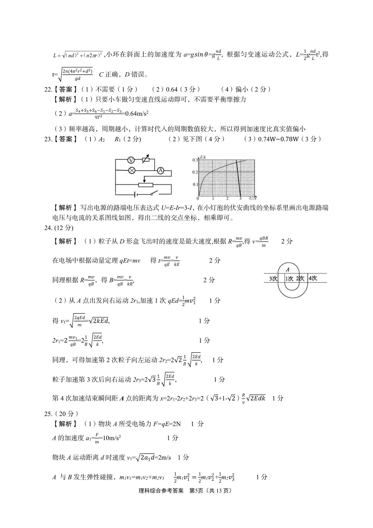 1.2024届陕西省安康市高三下学期第三次质量联考(三模)理科综合答案