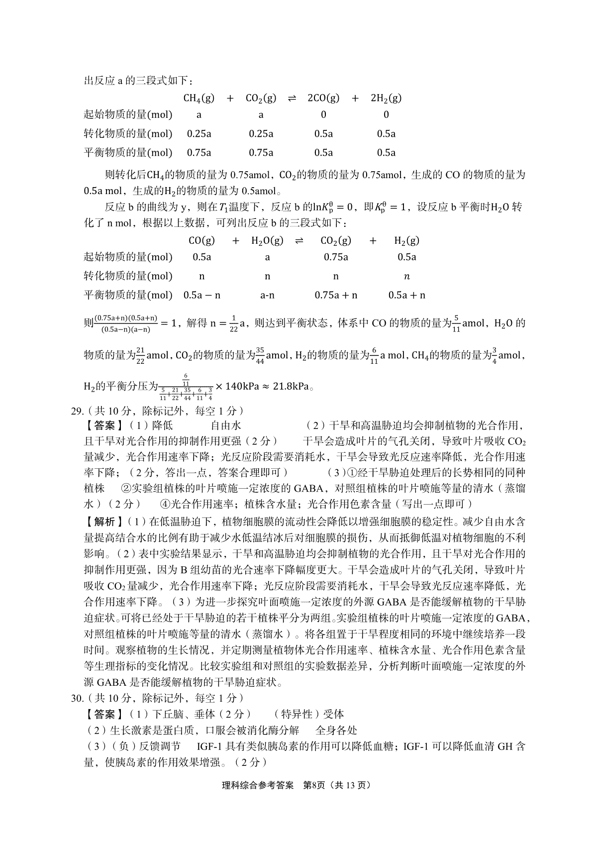 一、2024届陕西省安康市高三下学期第三次质量联考(三模)理科综合答案