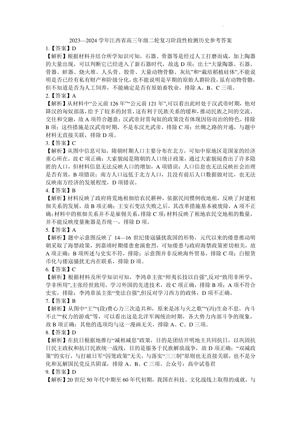 如果你想下载2024届江西省高三下学期二轮复习阶段性检测(二模)历史试题DOC或PDF版,请点击本文末链接!