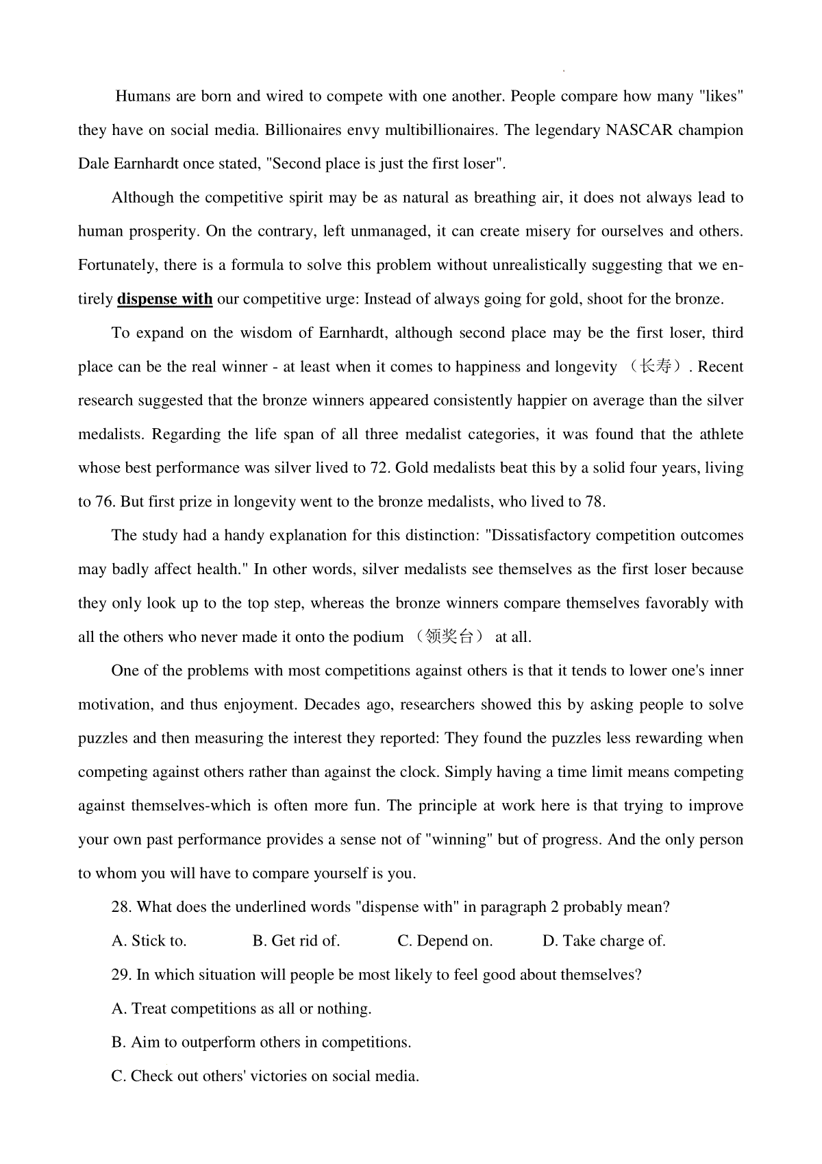 如果你想下载重庆市巴蜀中学2023-2024学年高三下3月月考英语试题DOC或PDF版,请点击本文末链接!