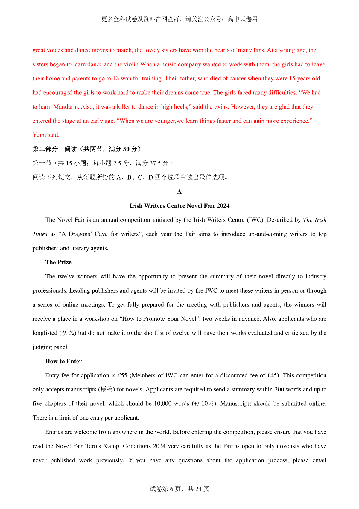 6.(全国乙卷) 2024届高三英语高考模拟风向卷01考试版A3