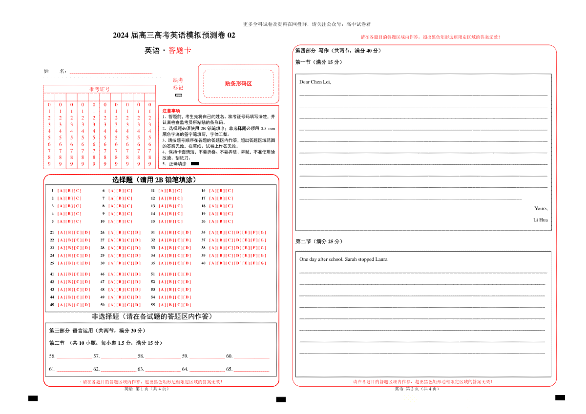 5.(新高考九省卷) 2024届高三英语高考模拟风向卷02答题卡