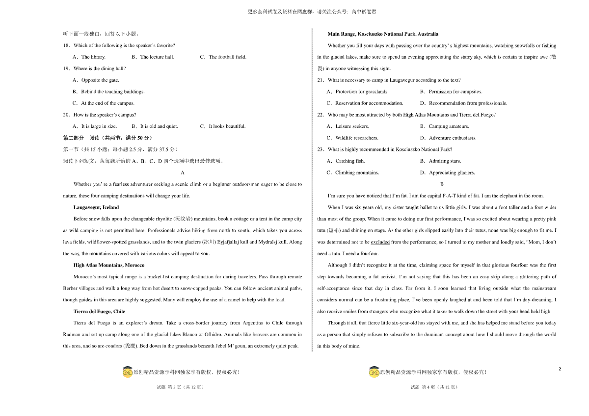 4.(新高考九省卷) 2024届高三英语高考模拟风向卷02考试版A4
