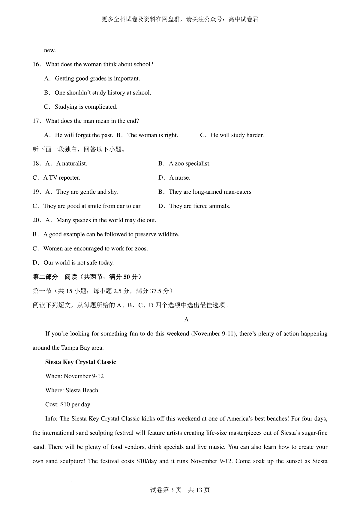 1.2024届高三英语高考模拟风向卷(新高考I卷)03考试版A3