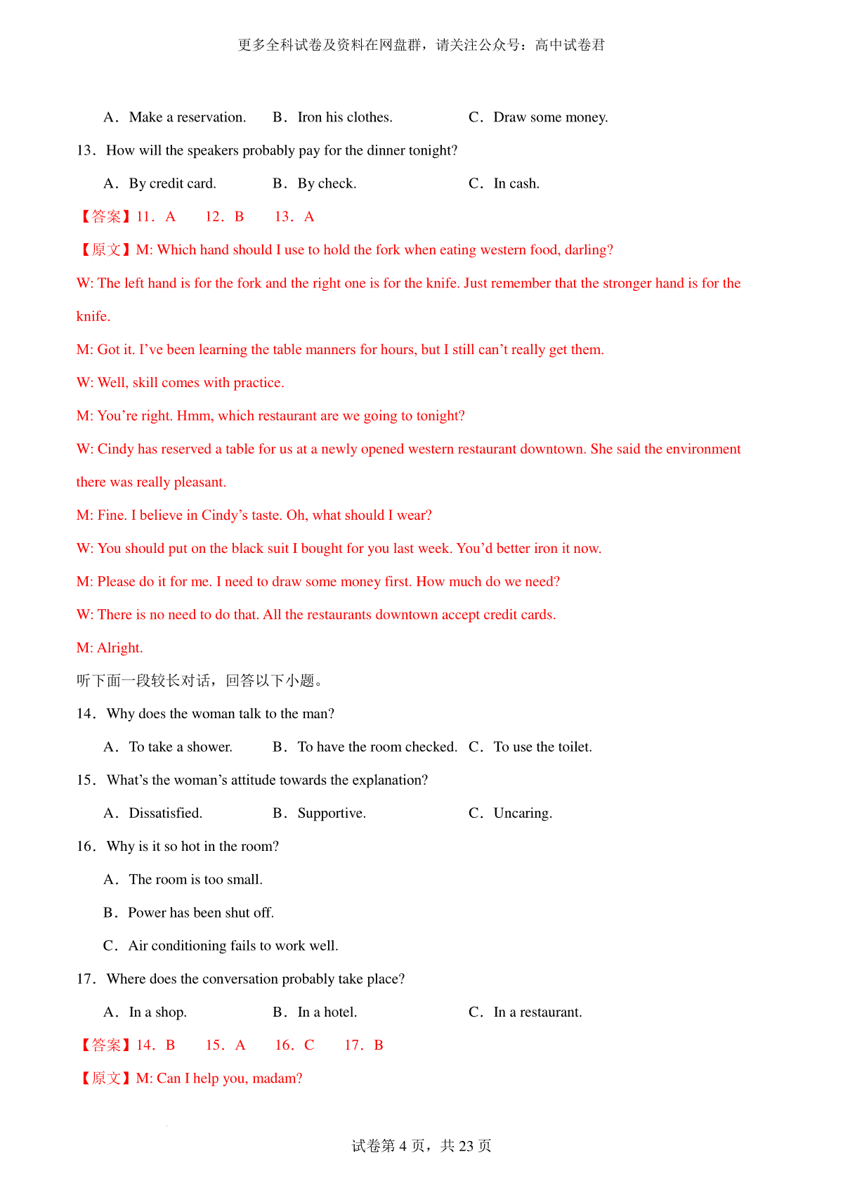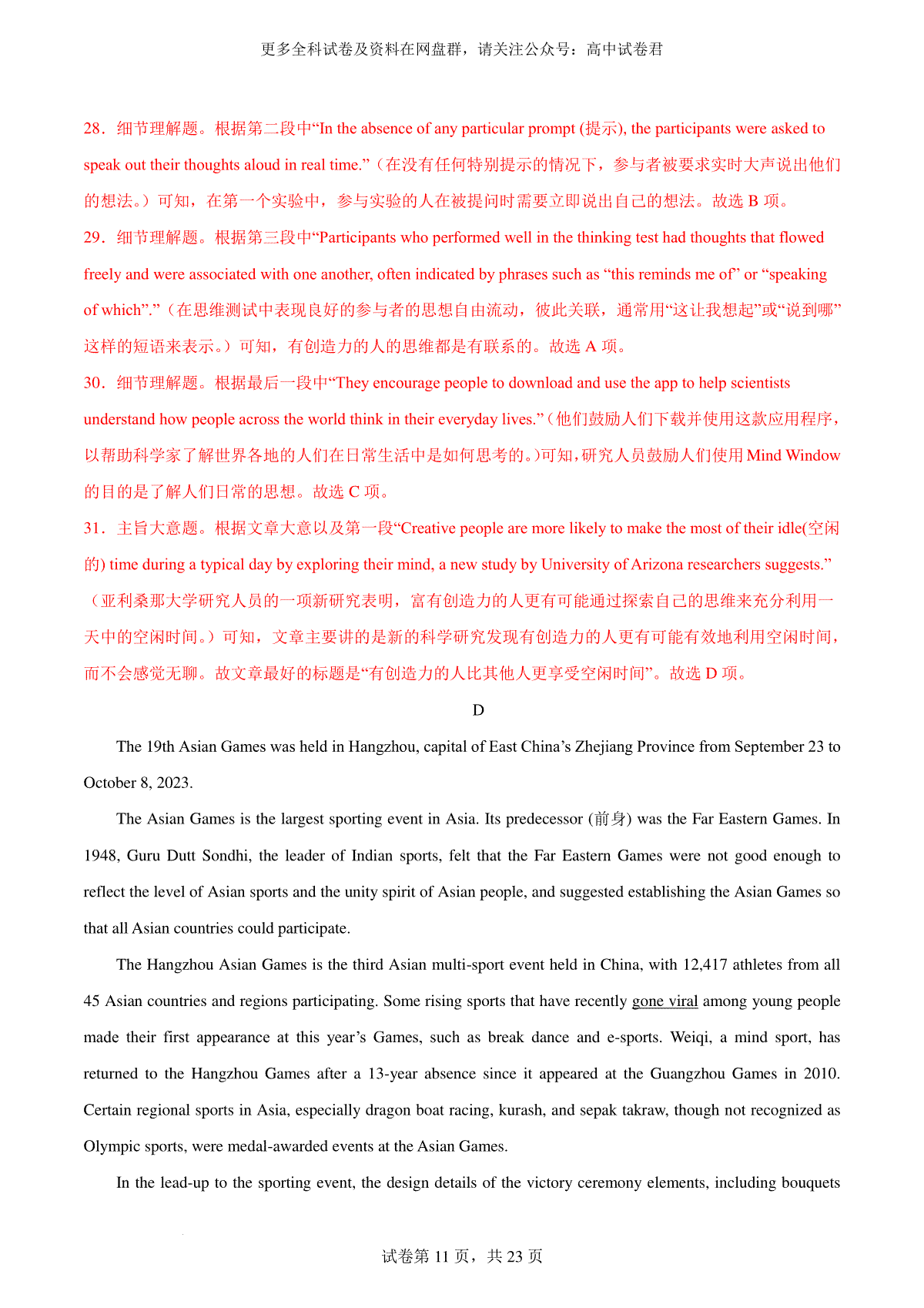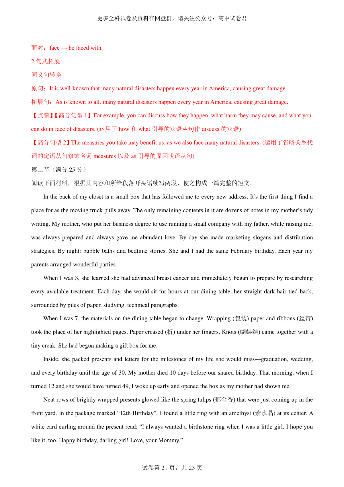 如果你想下载2024届高三英语高考模拟风向卷01(解析版)DOC或PDF版,请点击本文末链接!