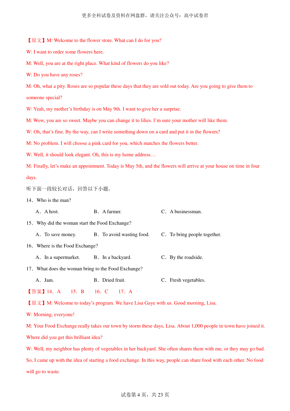 如果你想下载2024届高三英语高考模拟风向卷01(新高考II卷)解析版DOC或PDF版,请点击本文末链接!