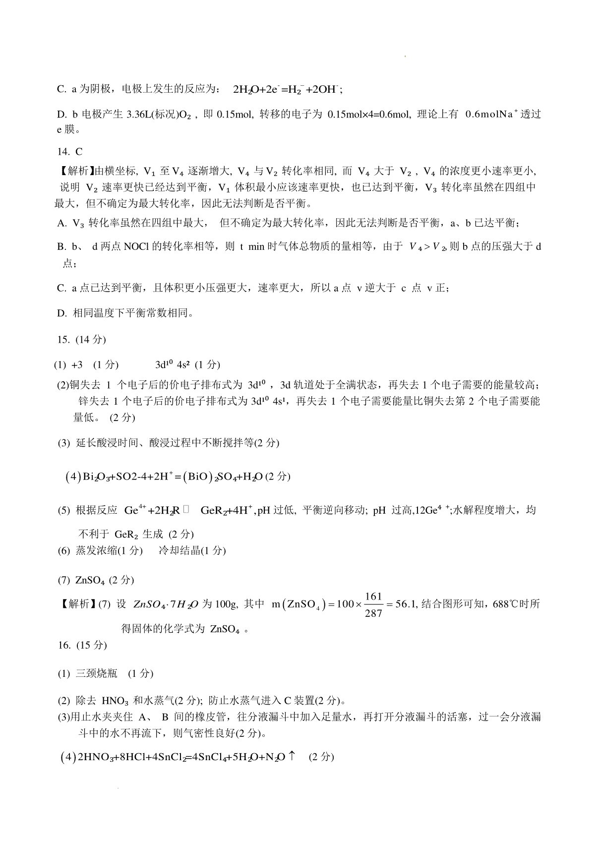 一、康德2024年重庆市普通高中学业水平选择性考试高考模拟调研卷(三)化学参考答案