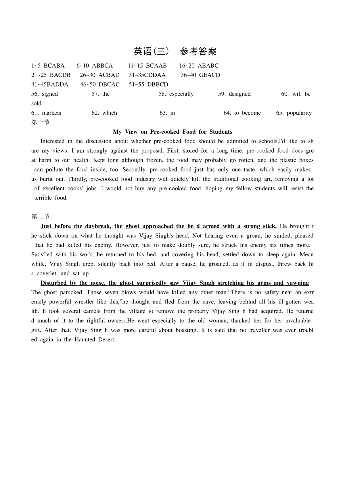 一、重庆康德2024年普通高等学校招生全国统一考试高考模拟调研卷(三)英语参考答案